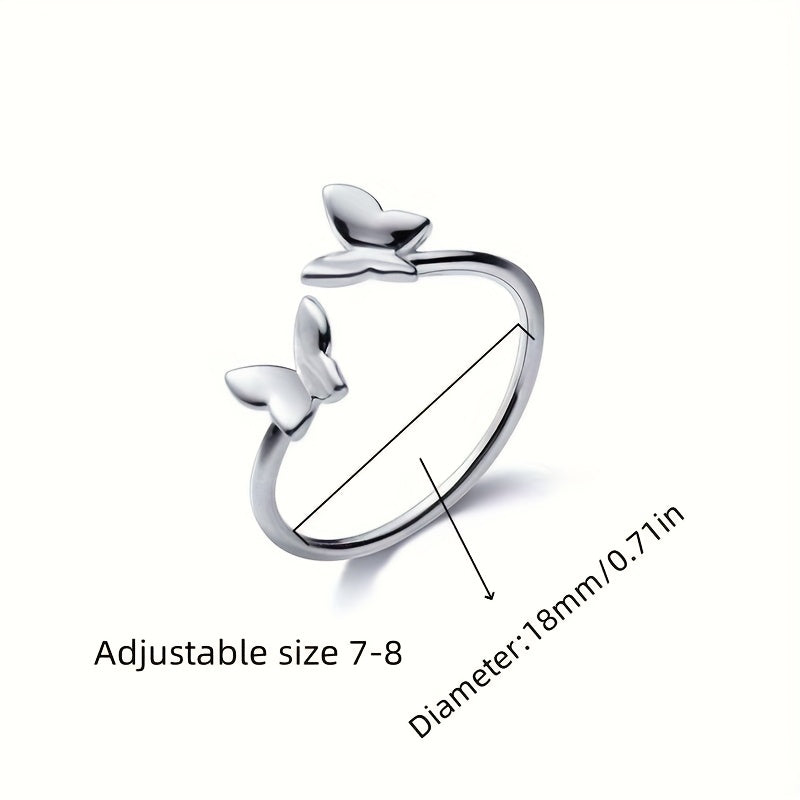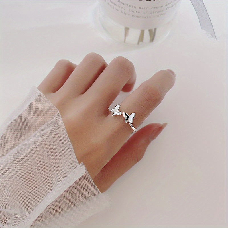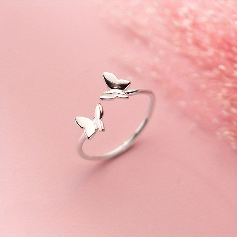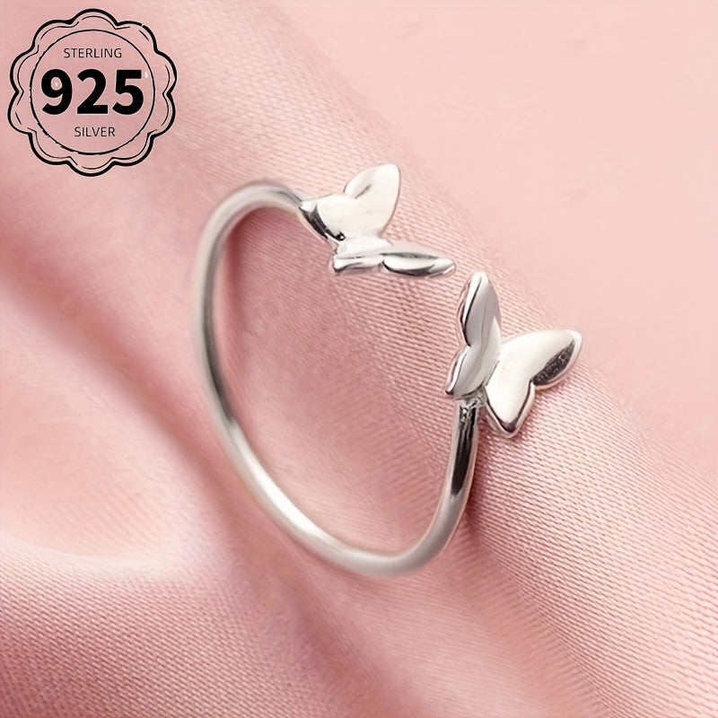S925 Silvery Butterfly Wedding Ring for Women Open Hand Jewelry