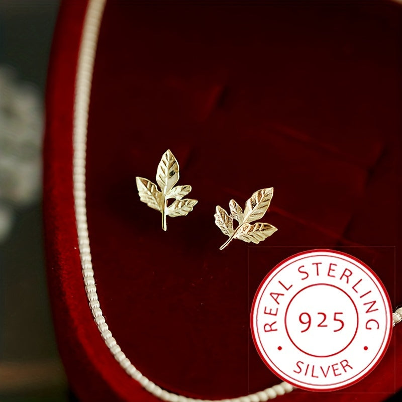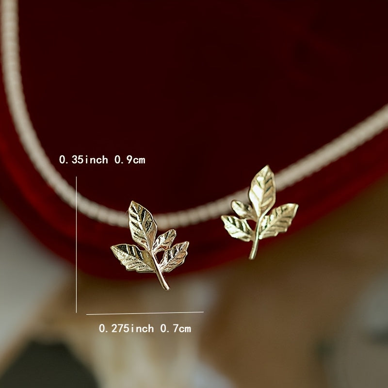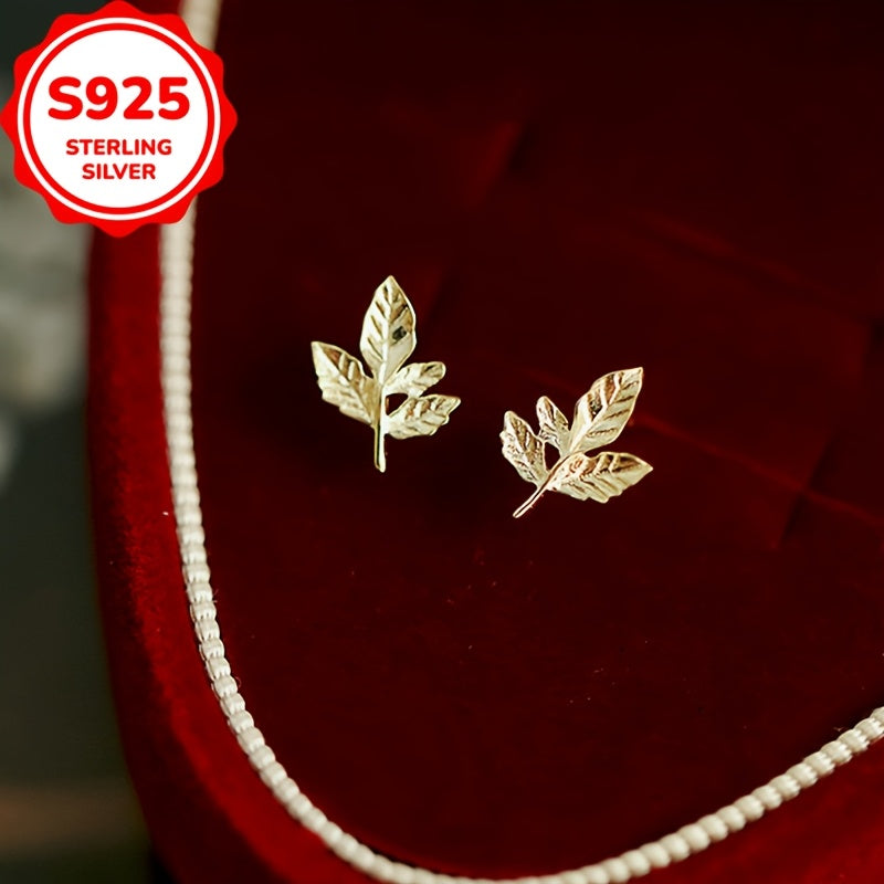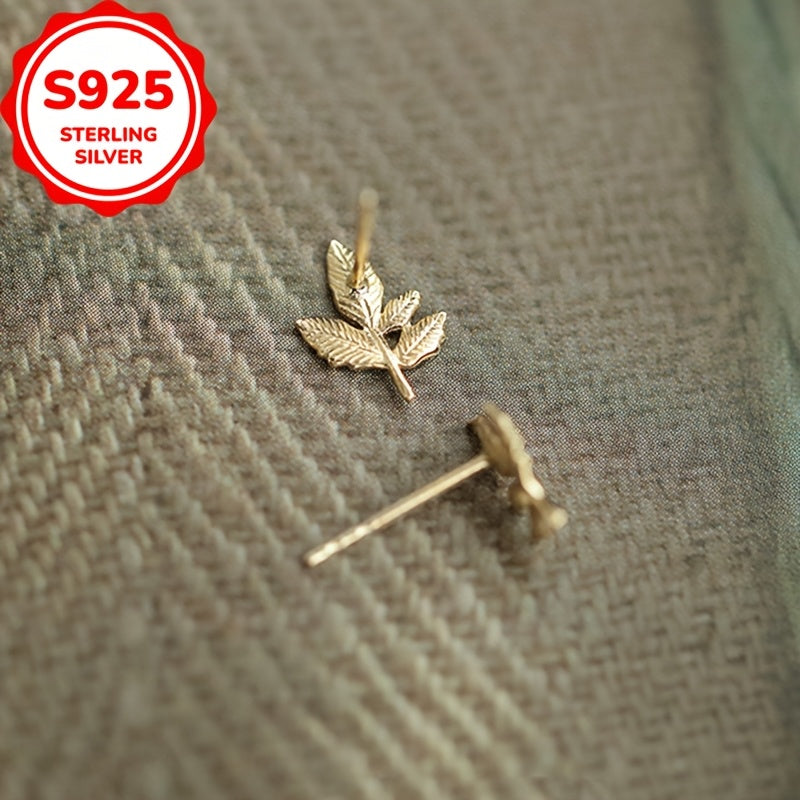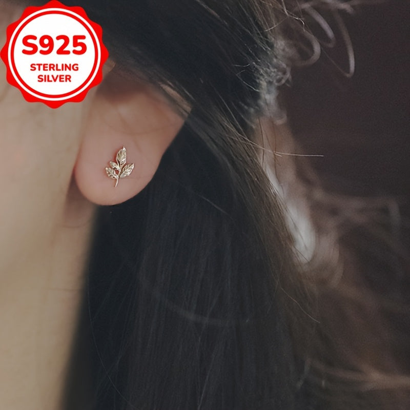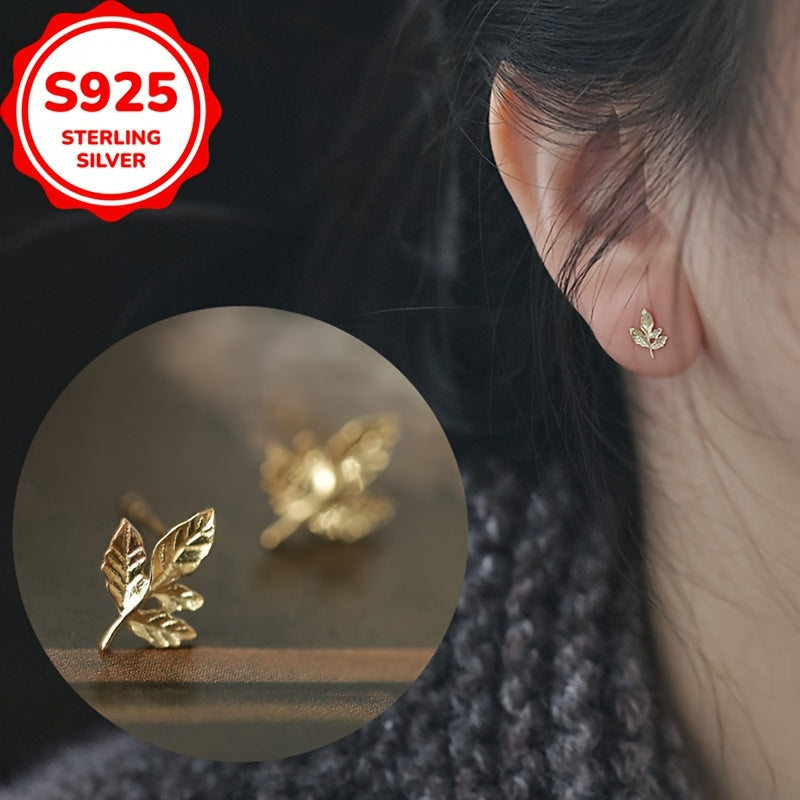 These versatile S925 silvery earrings feature a small golden leaf design, perfect for daily wear. The fresh and elegant design is ideal for any occasion, from commuting to a night out.