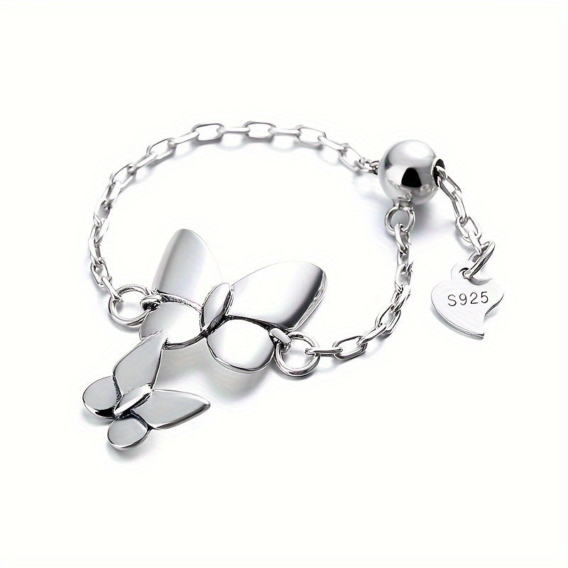 This elegant ring features a double butterfly design with a tassel chain pull. It is made of pure s925 silver with a low allergy index, making it suitable for sensitive skin.