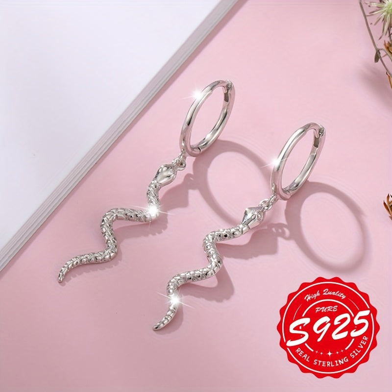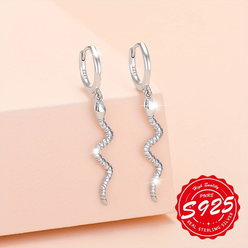 These snake-shaped earrings are made of pure S925 silver, perfect for parties, music festivals, and other occasions. They have a sweet and neutral design that is suitable for any outfit.