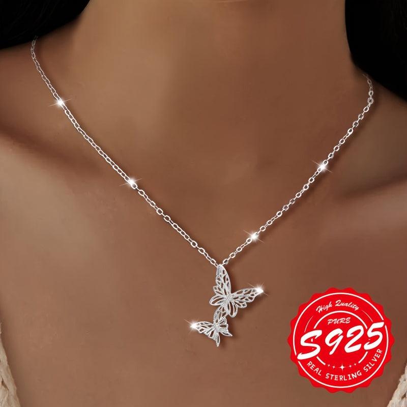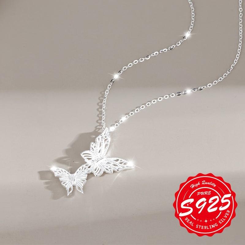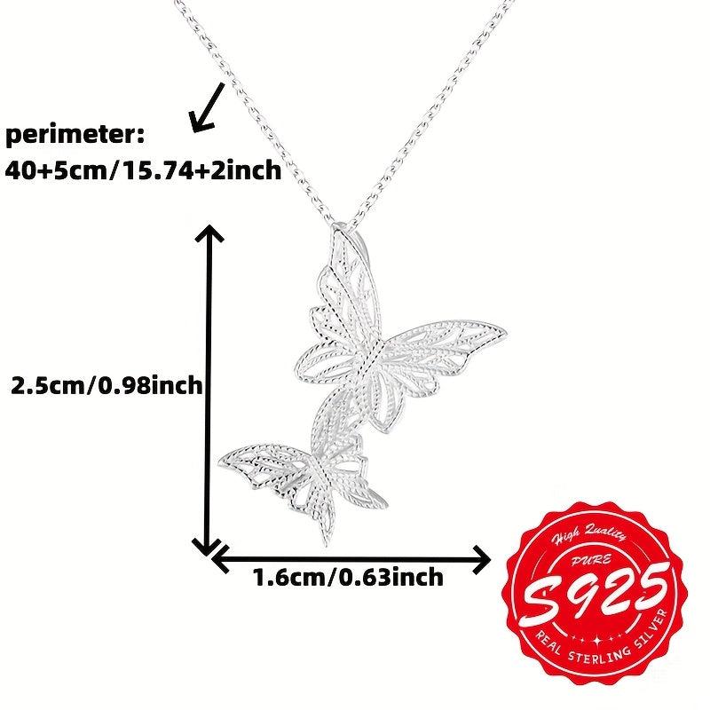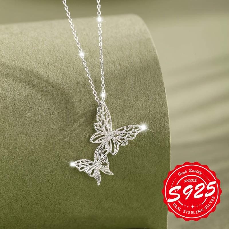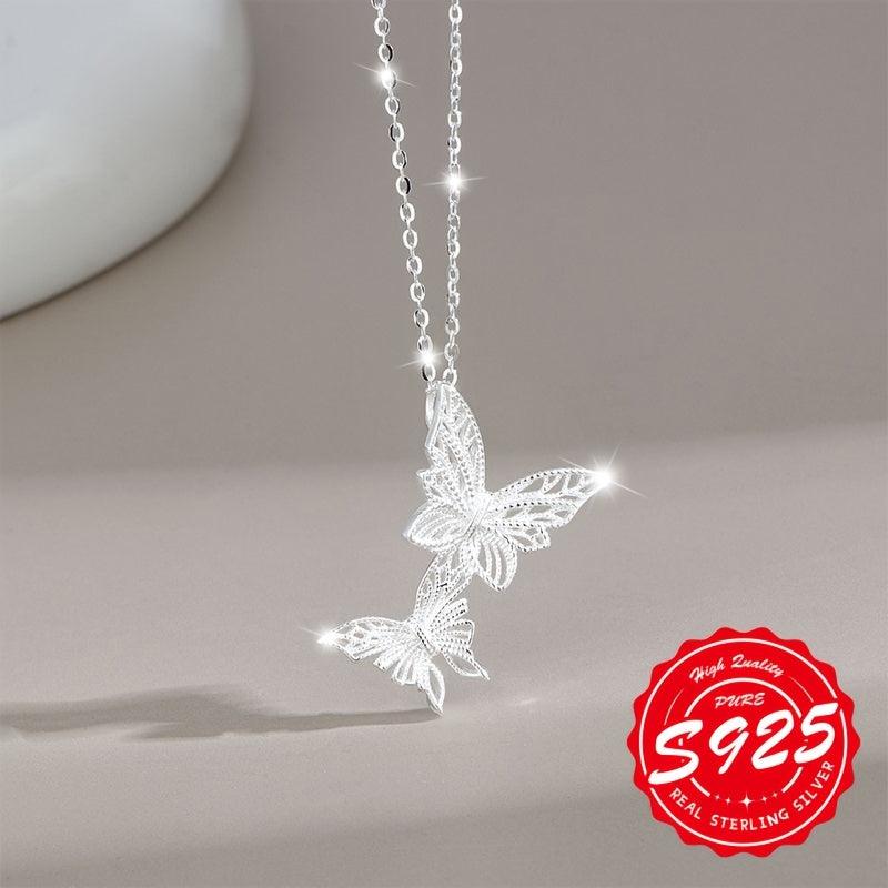 Elegant double butterfly pendant necklace made of high-quality S925 sterling silver. The brushed finish adds a touch of lightness and sophistication to your look.