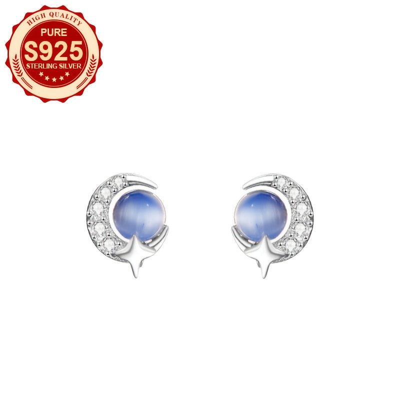 Add a touch of celestial charm to your look with these glittering crescent moon and star stud earrings. Made of hypoallergenic S925 sterling silver, these lightweight earrings are perfect for daily wear.