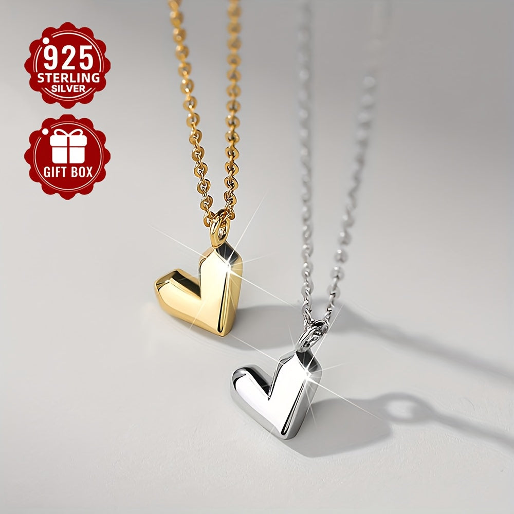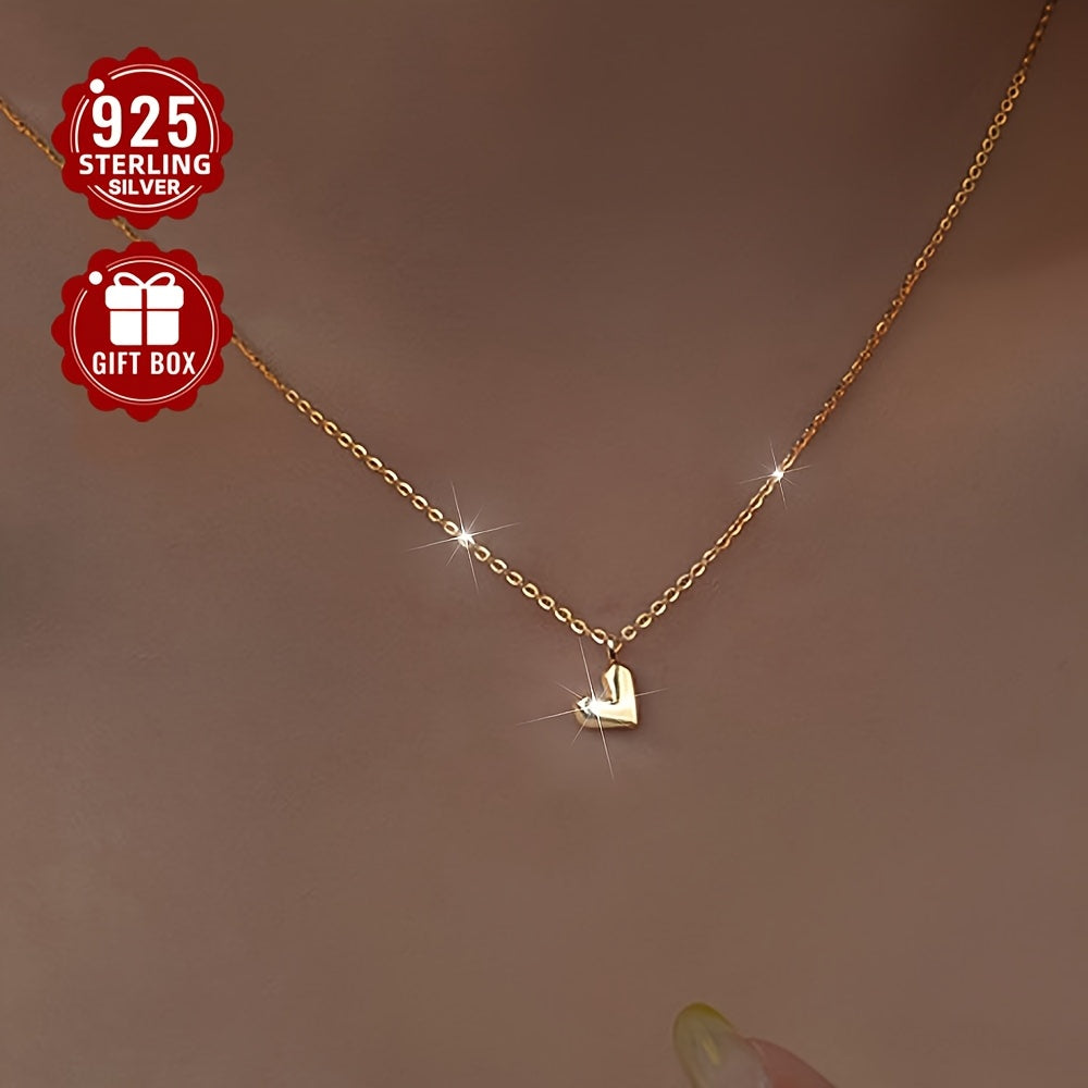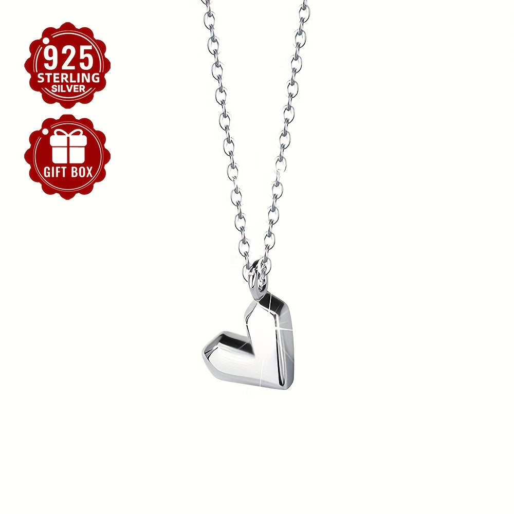 S925 Sterling Silver Heart Pendant Love Necklace Gift Jewelry