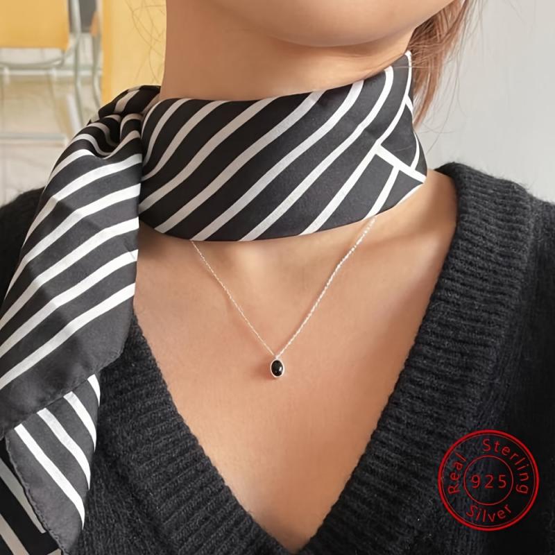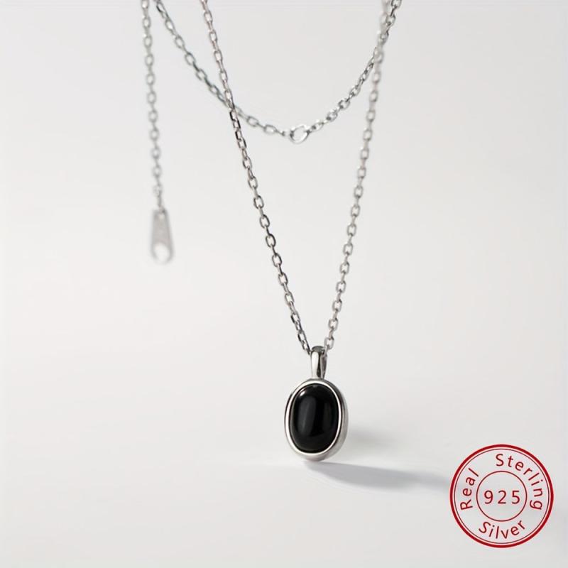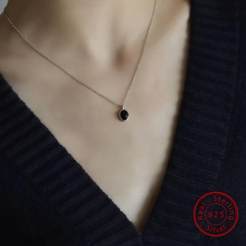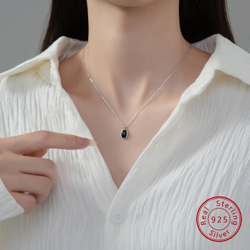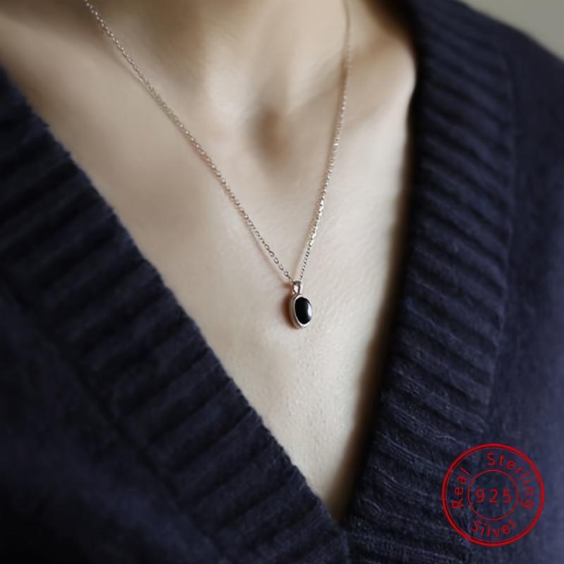 S925 Sterling Silver Oval Geometric Pendant Necklace for Women