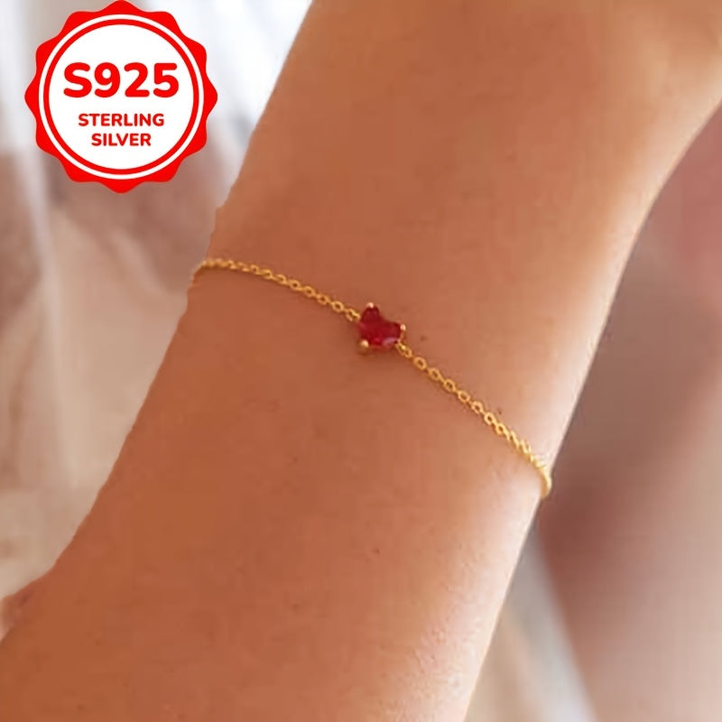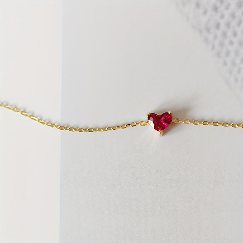 Elegant and stylish, this bracelet features a red heart cubic zirconia pendant, perfect for daily wear or as a gift for friends. Crafted from high-quality S925 sterling silver.