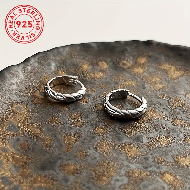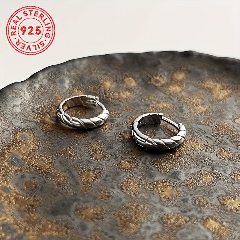 These S925 sterling silver twisted circle earrings feature a unique design that adds a touch of vintage charm to any outfit. They are lightweight at 2g, making them comfortable to wear all day long. Perfect for both casual and novelty occasions.