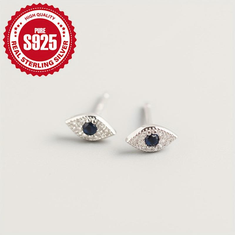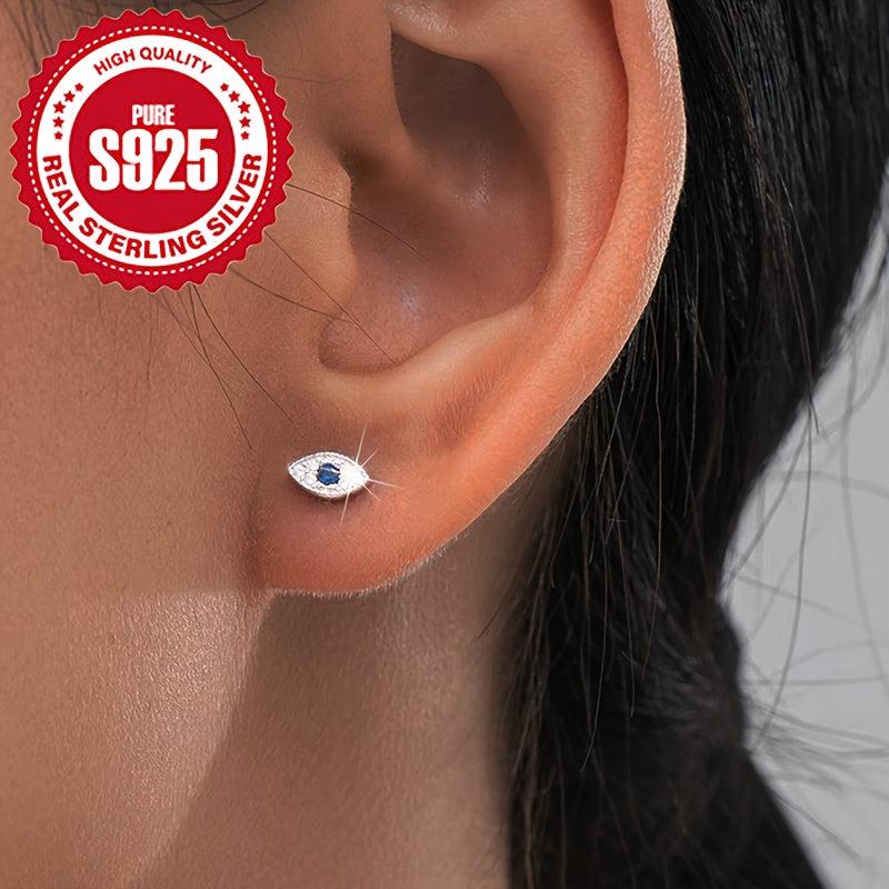 Silver Devil Eye Mini Stud Earrings Hypoallergenic 0.45g