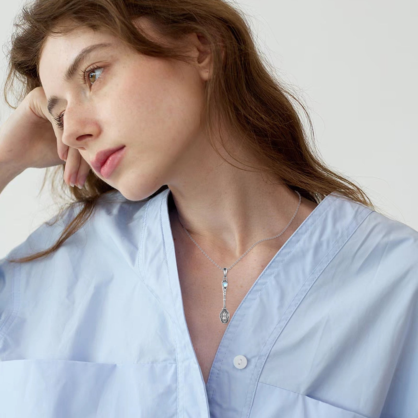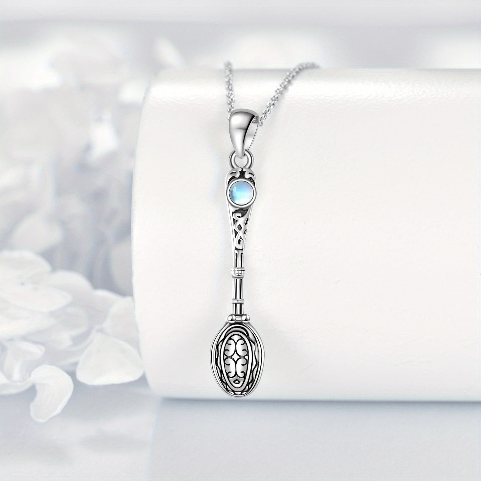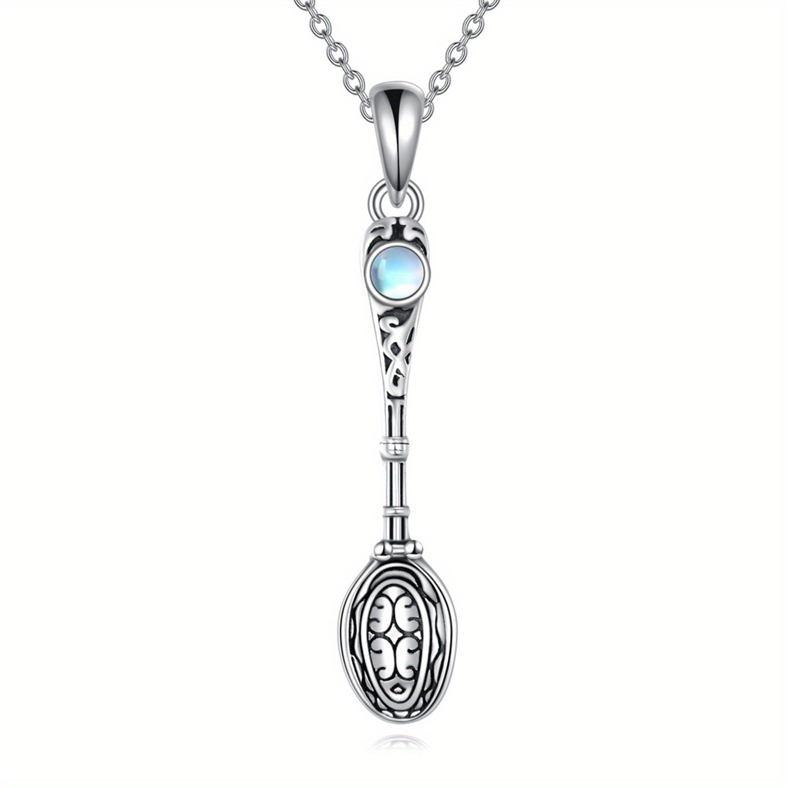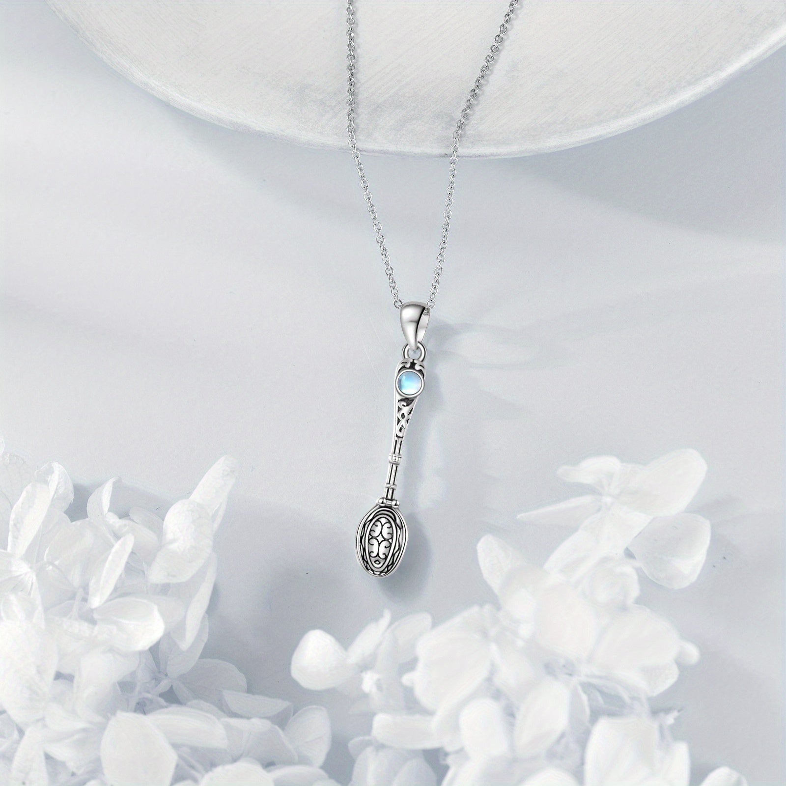• Sterling silver (S925) spoon necklace with moonstone pendant