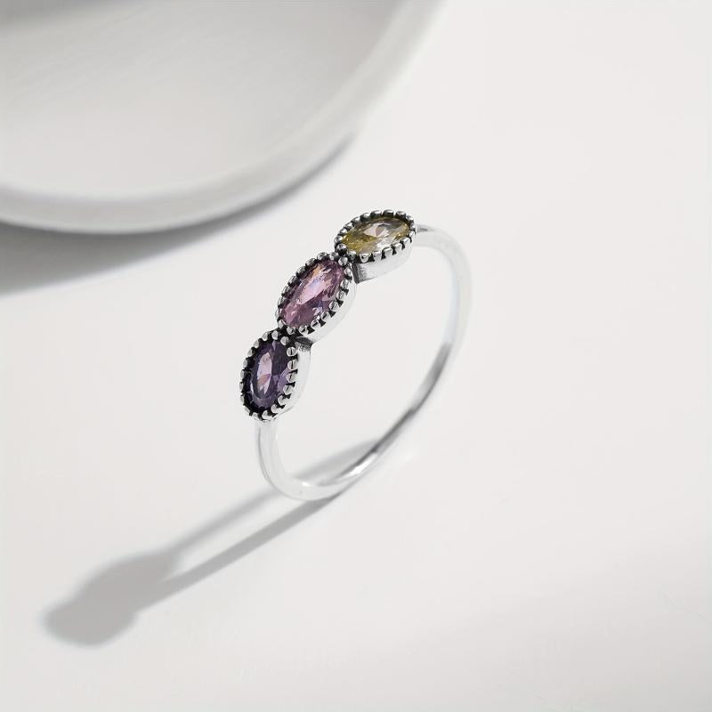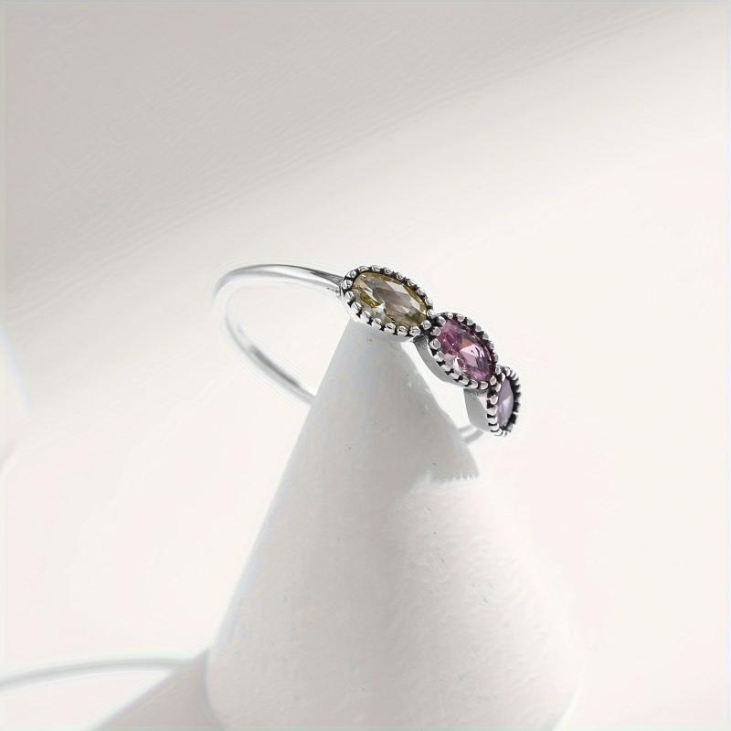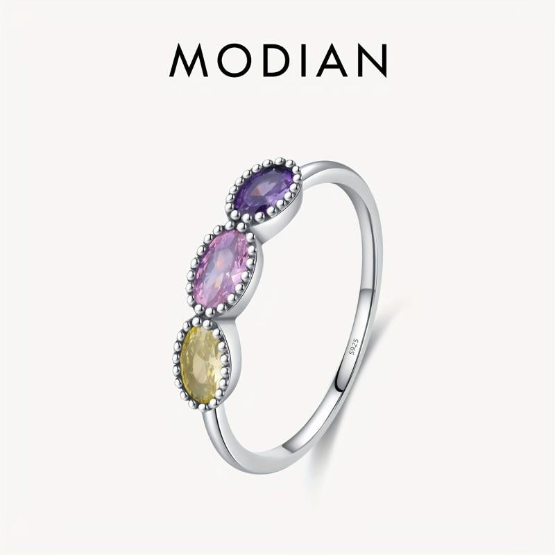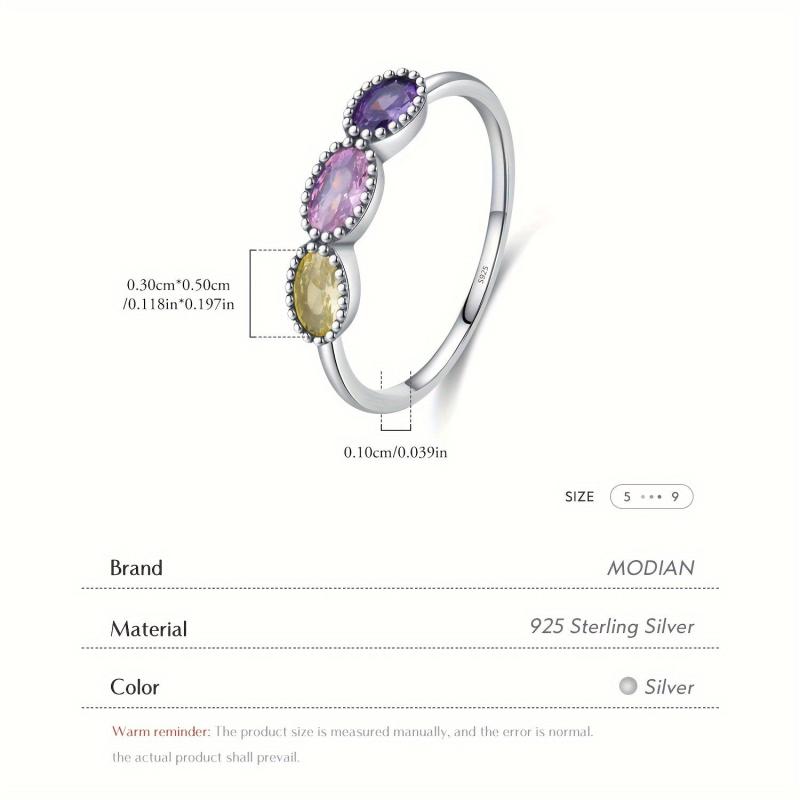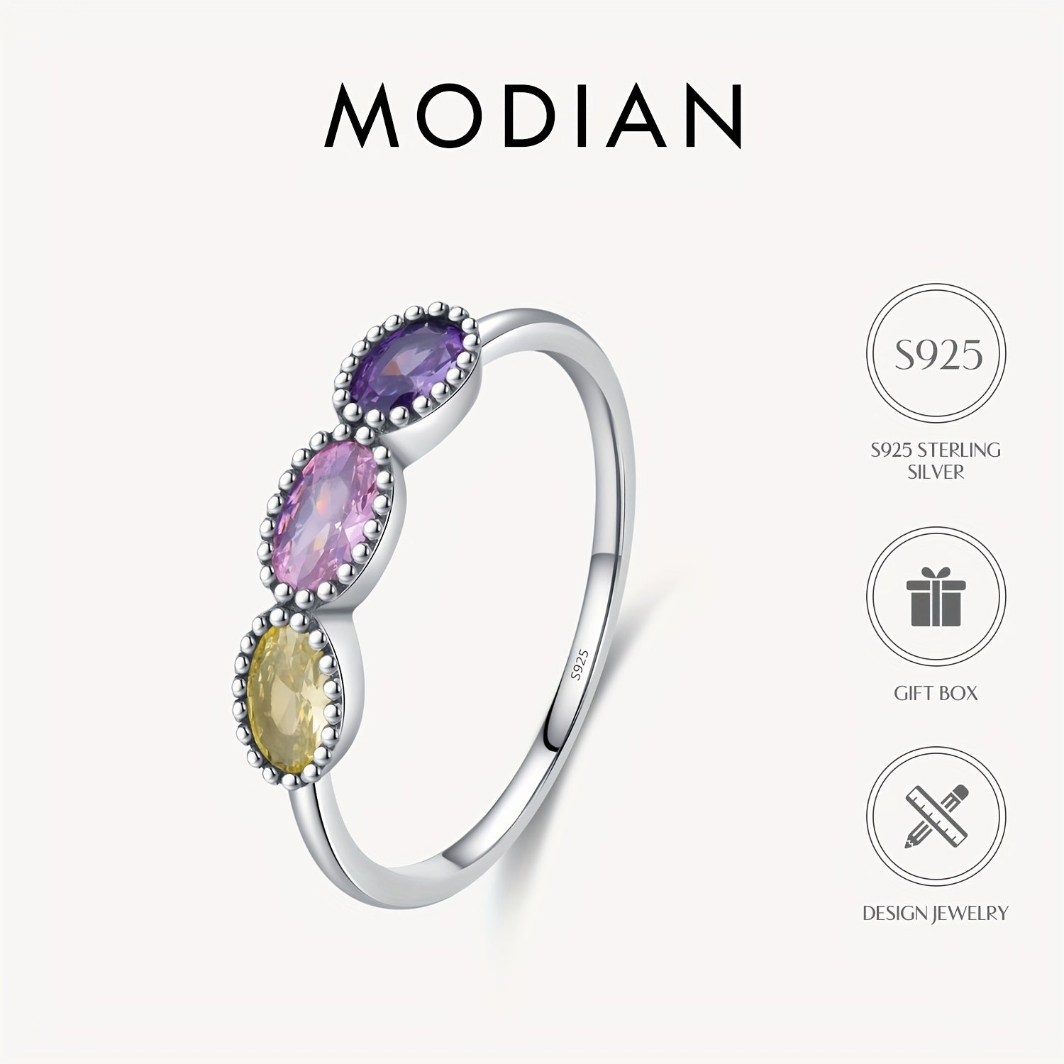 This stunning MODIAN ring is crafted from sterling silver 925 with rainbow zirconia crystals in a vintage style design. Perfect for daily wear or vacation, it makes a lovely Valentine's gift for her.