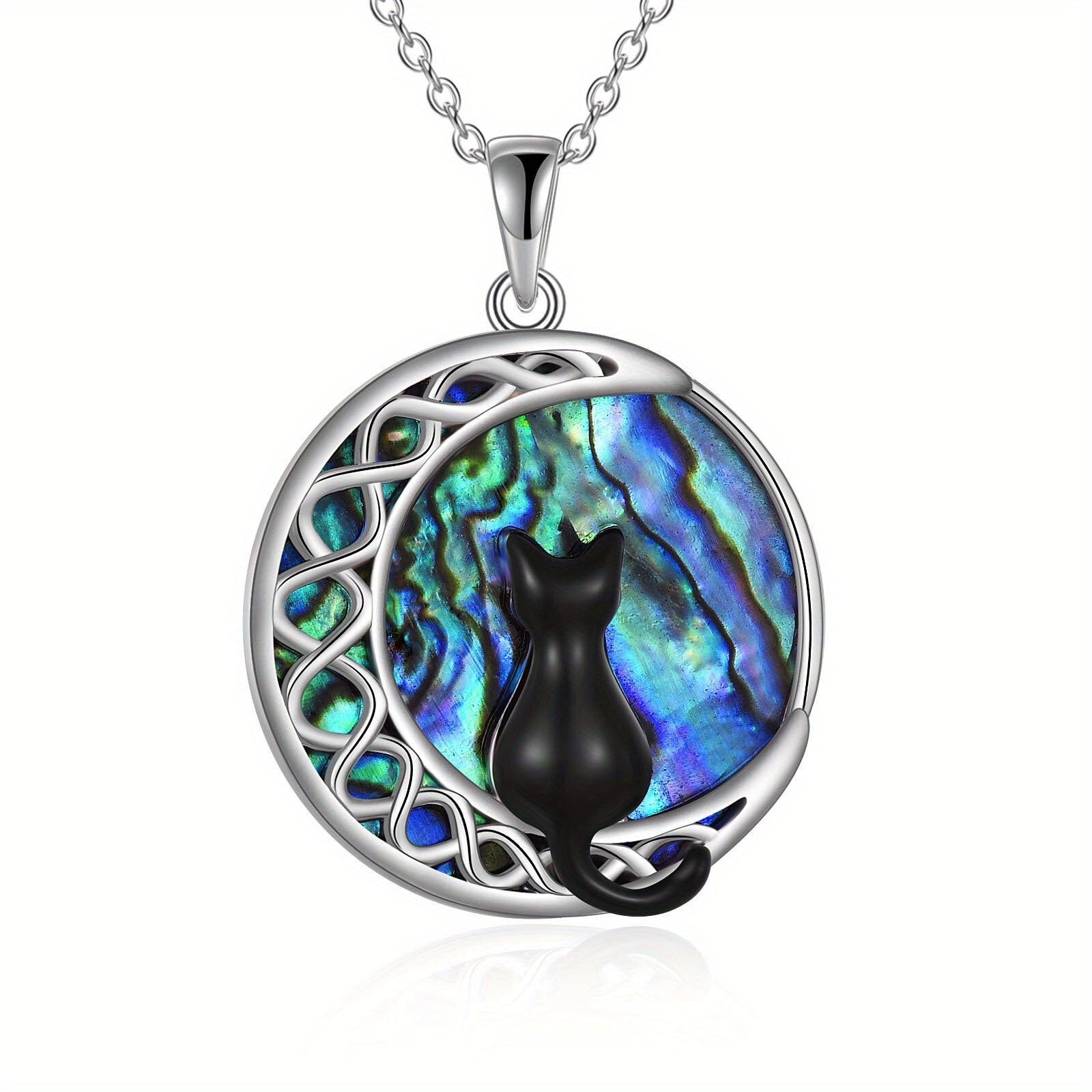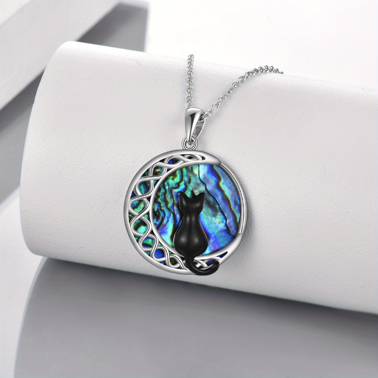 This elegant cat necklace features a Celtic moon design crafted from sterling silver. It's a perfect piece of jewelry for cat lovers who appreciate Celtic symbolism.