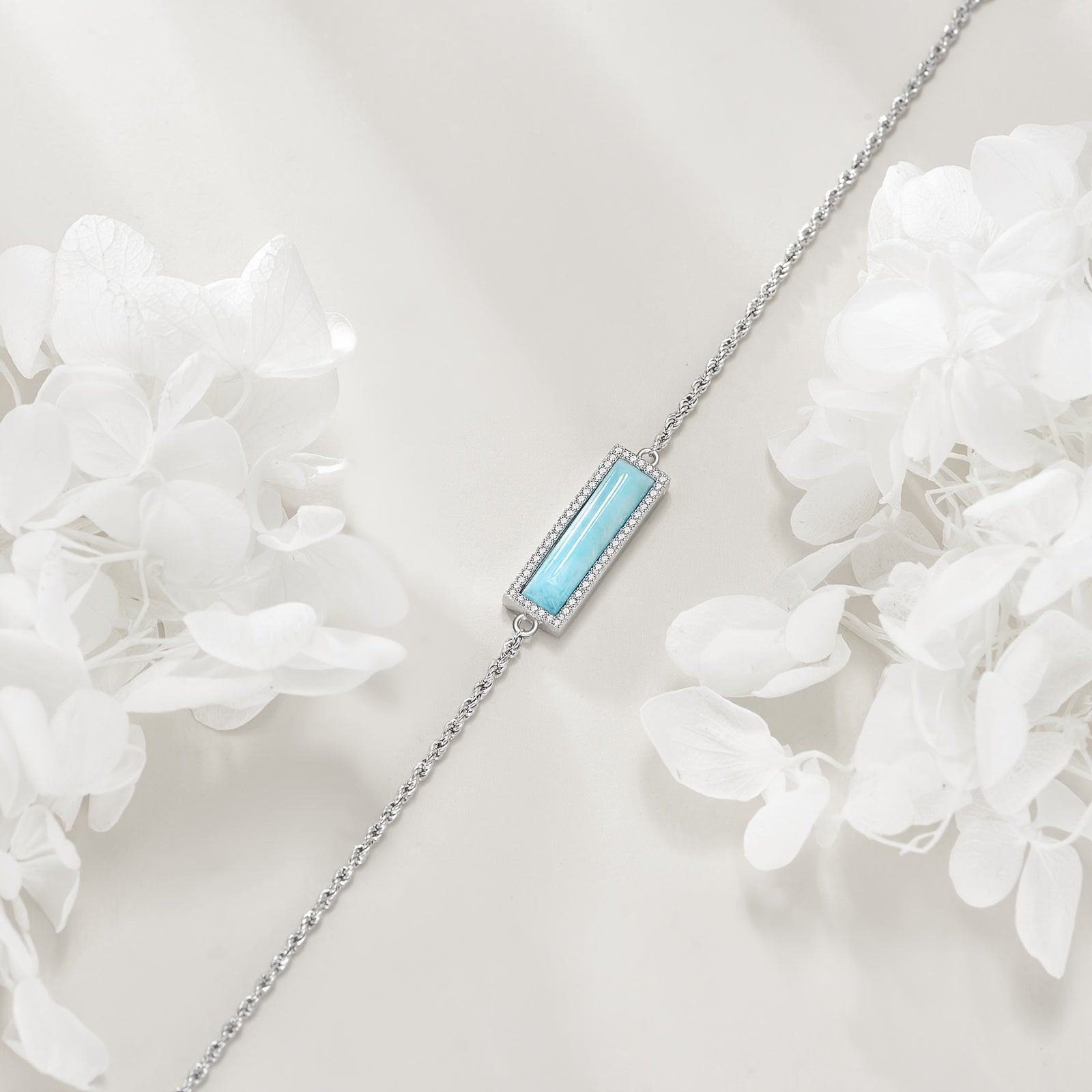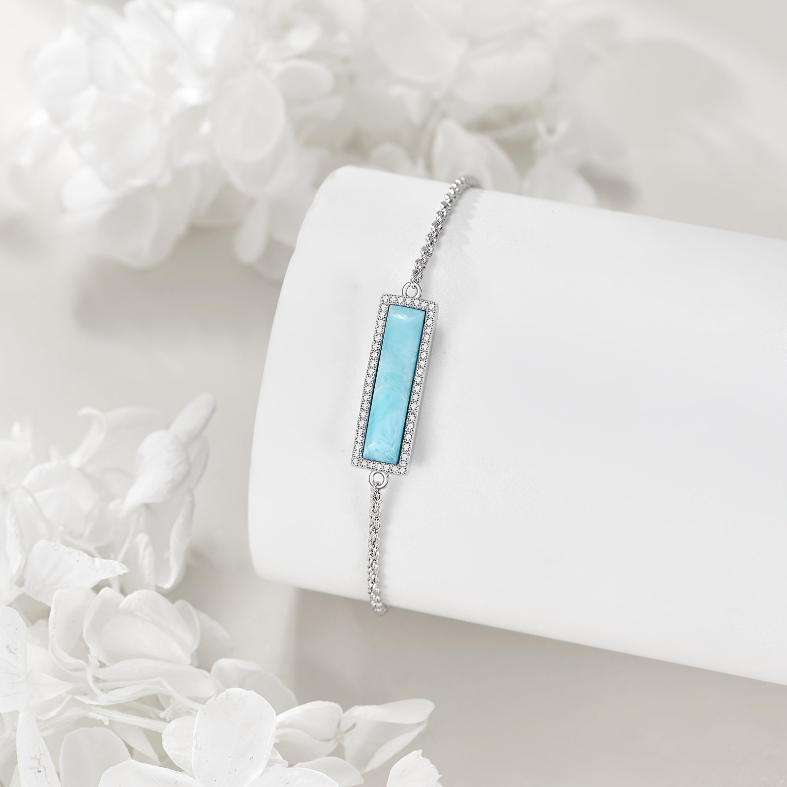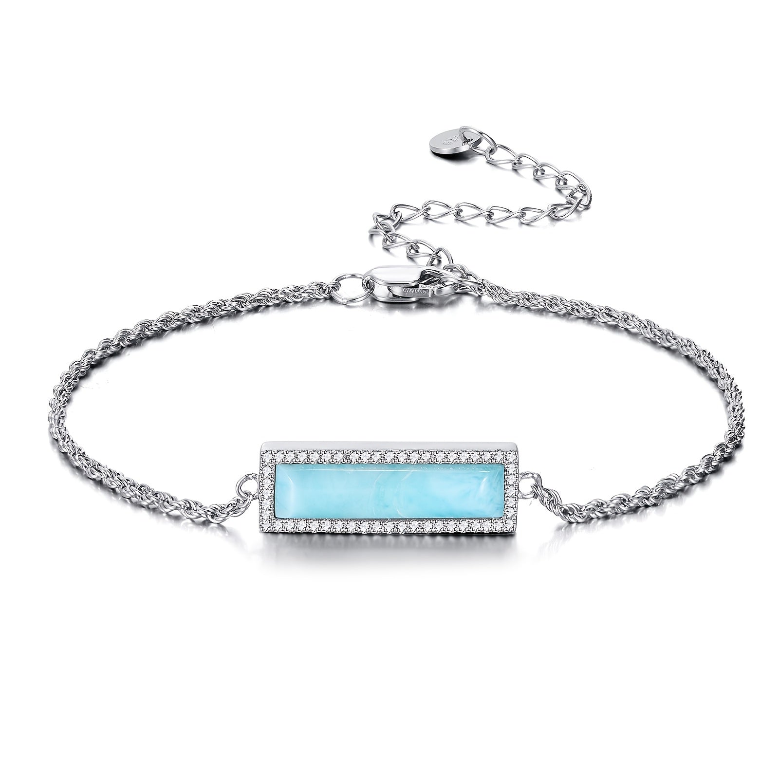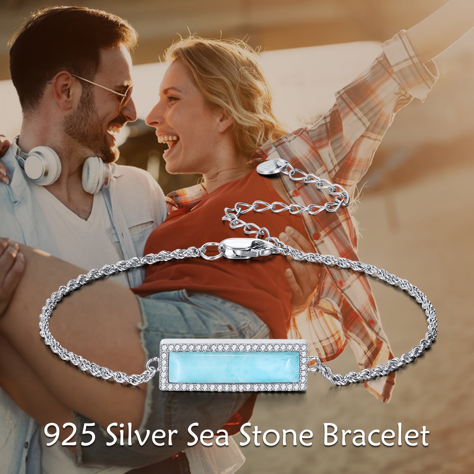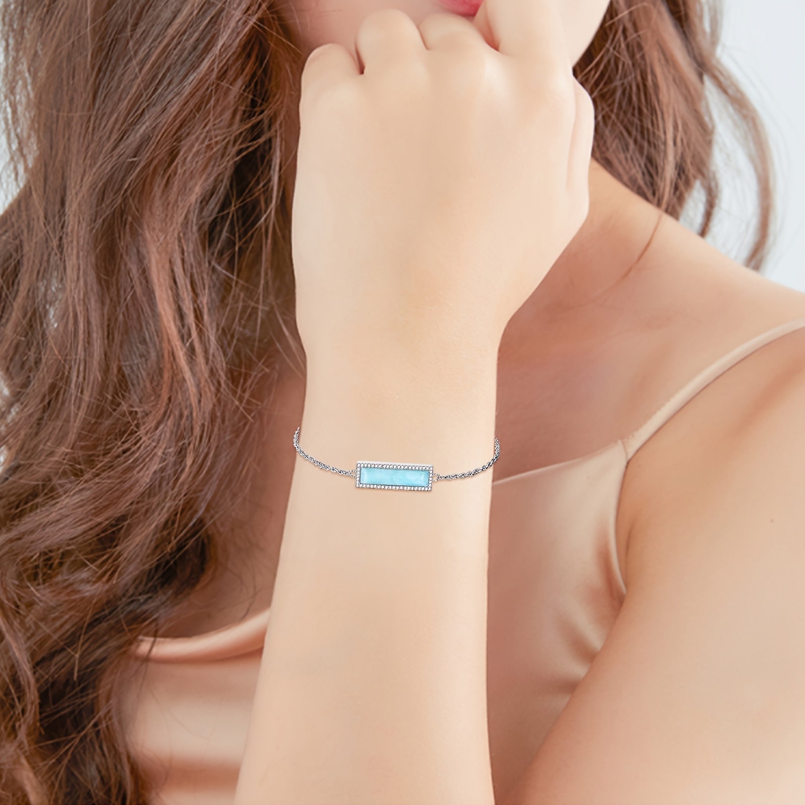 This stunning Larimar bracelet is crafted from S925 sterling silver and features adjustable Larimar beads. A perfect piece of beach jewelry.