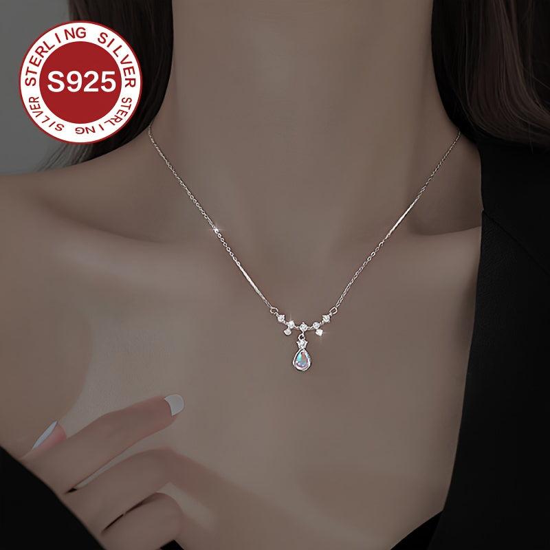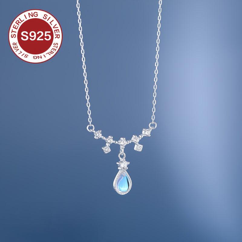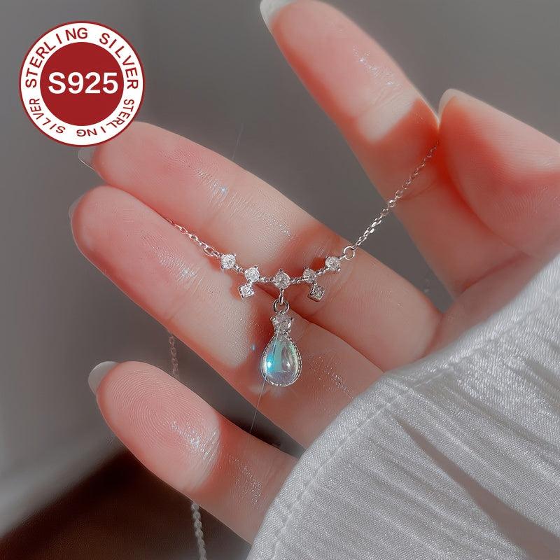 This exquisite necklace features a teardrop-shaped moonstone pendant on a 925 sterling silver chain. Perfect for parties and banquets, it makes an ideal gift for Valentine's Day or Mother's Day.