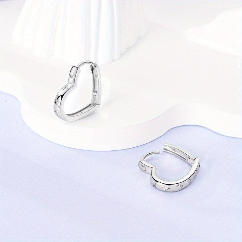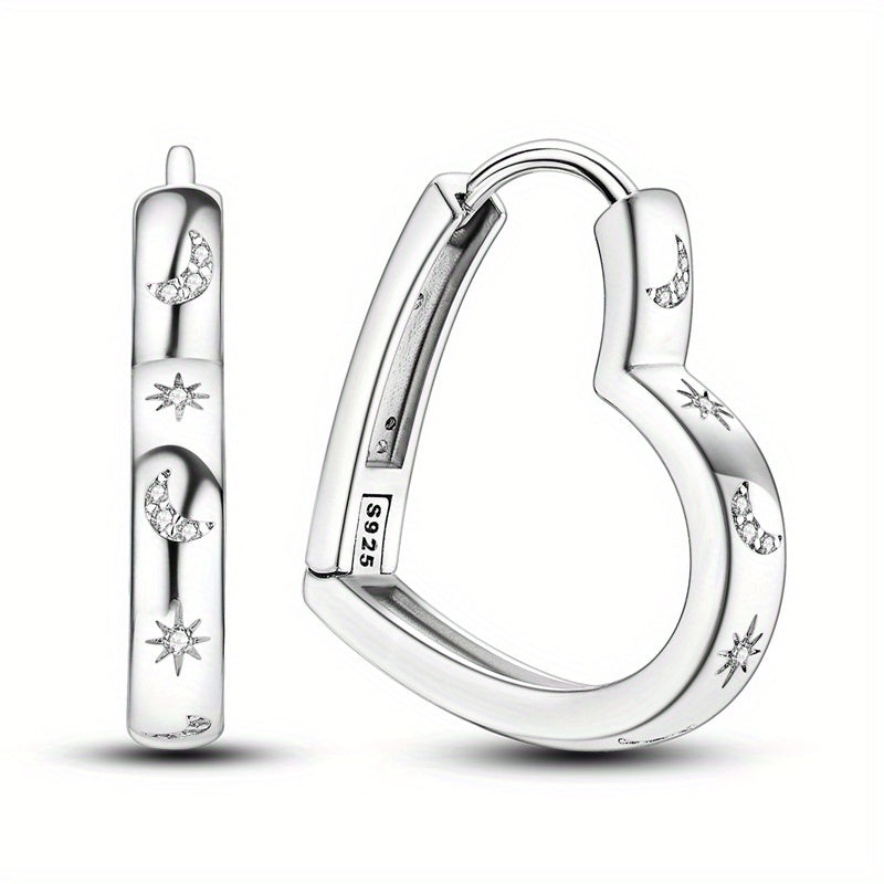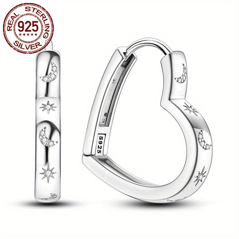 Elegant vintage style sterling silver heart shaped star & moon stud earrings with sparkling cubic zirconia. Perfect for a touch of retro glamour.