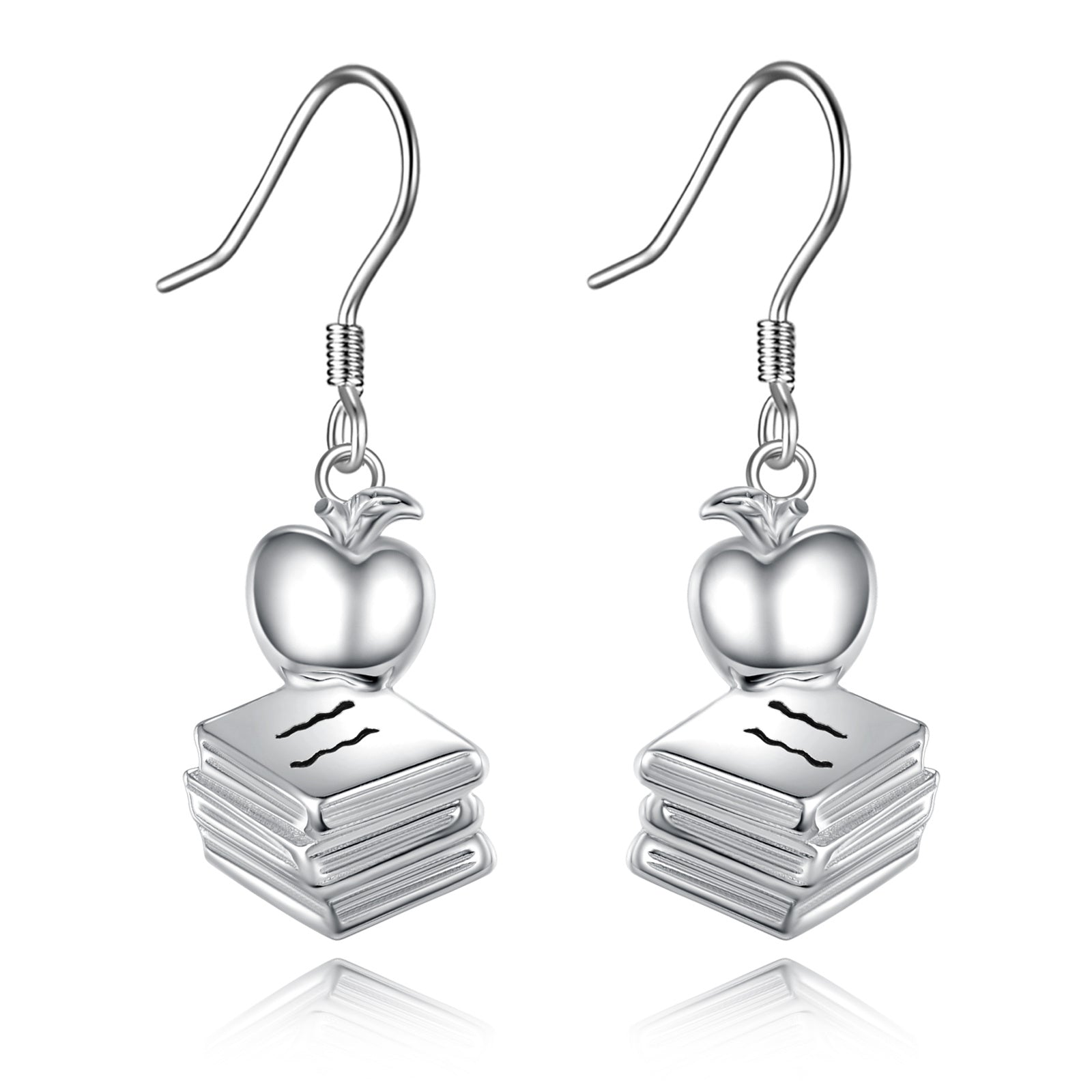 Show your appreciation for a teacher with these adorable silver apple and book earrings. Perfect gift for a teacher who loves to read and educate.