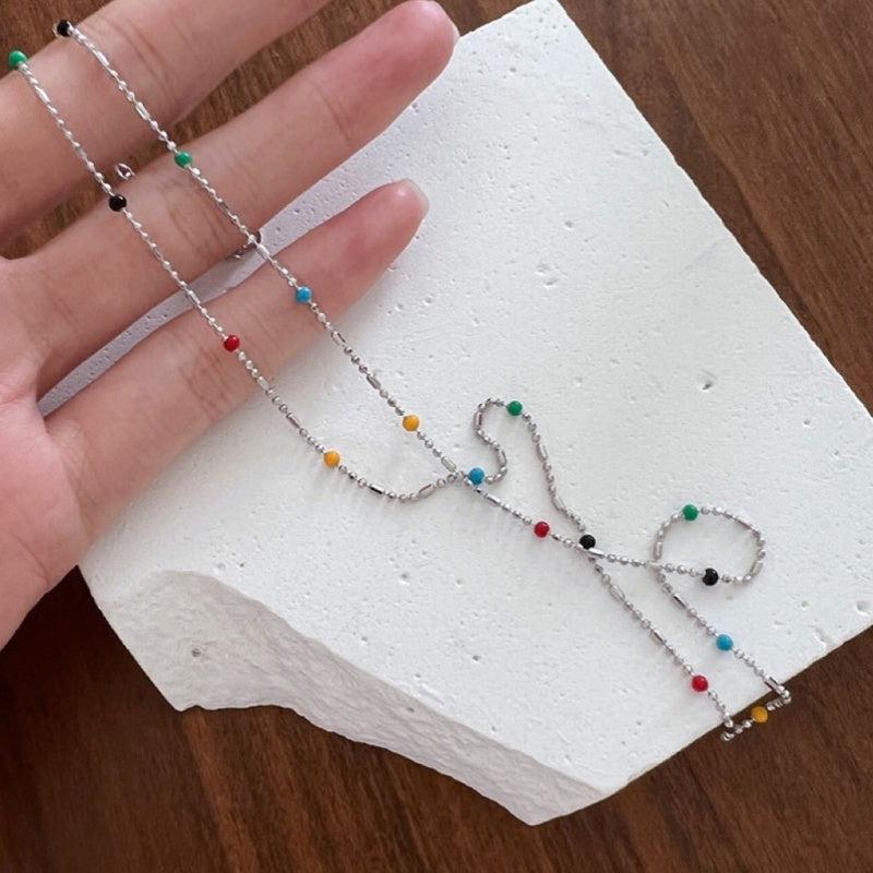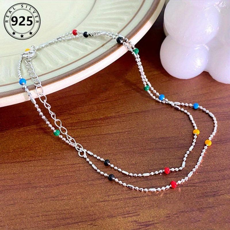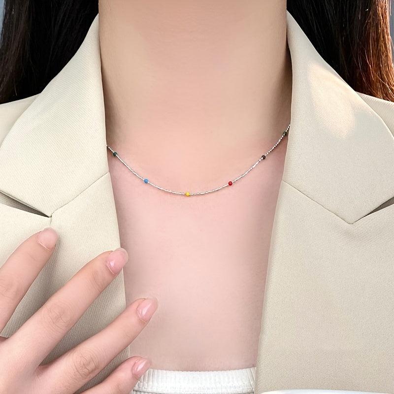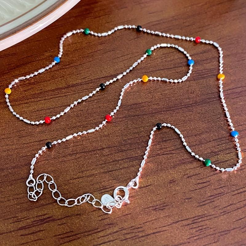 Stylish and colorful, this S925 sterling silver rainbow bean necklace is perfect for daily wear. It's a versatile clavicle chain that adds a pop of color to your outfit.