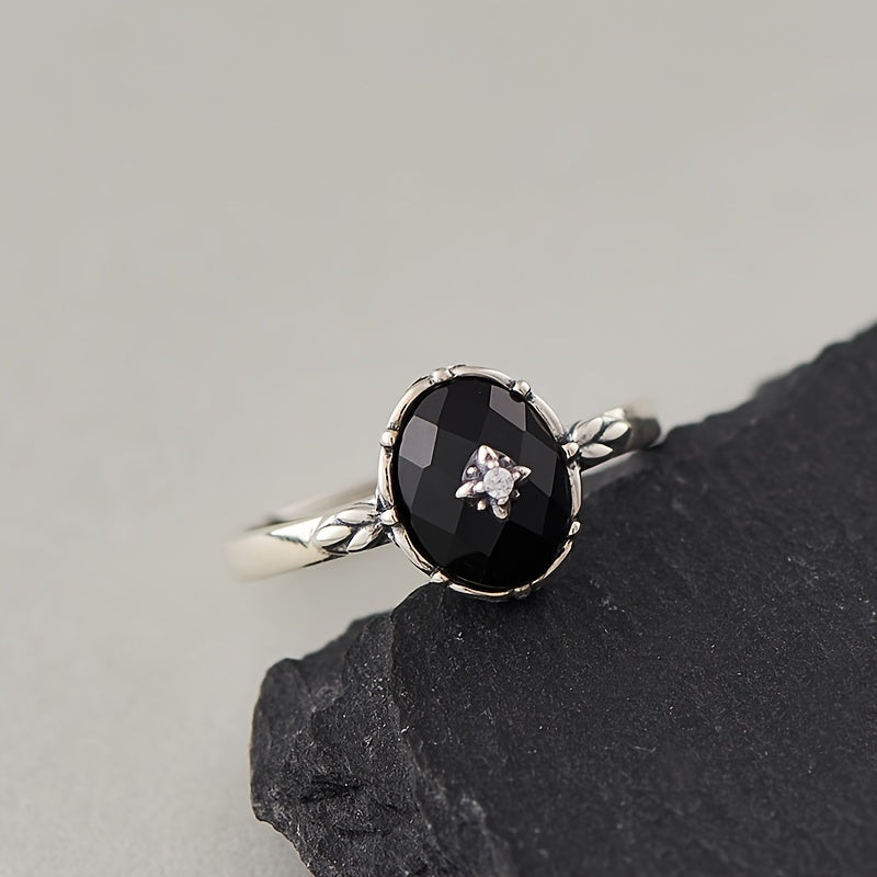 This vintage royal style ring features a natural oval agate on a 925 sterling silver band, making it ideal for weddings, anniversaries, and engagements. A perfect gift for your loved one!