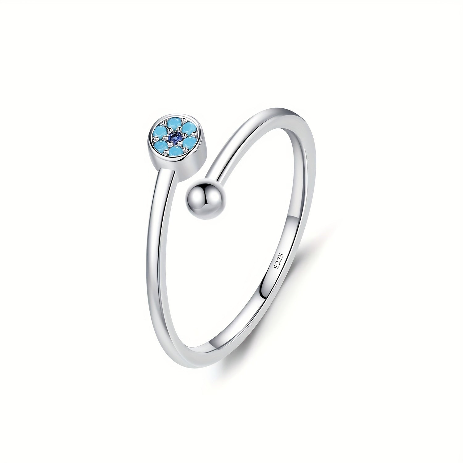 Elegant 925 sterling silver ring with faux turquoise and devil's eye design, perfect for special occasions and celebrations.