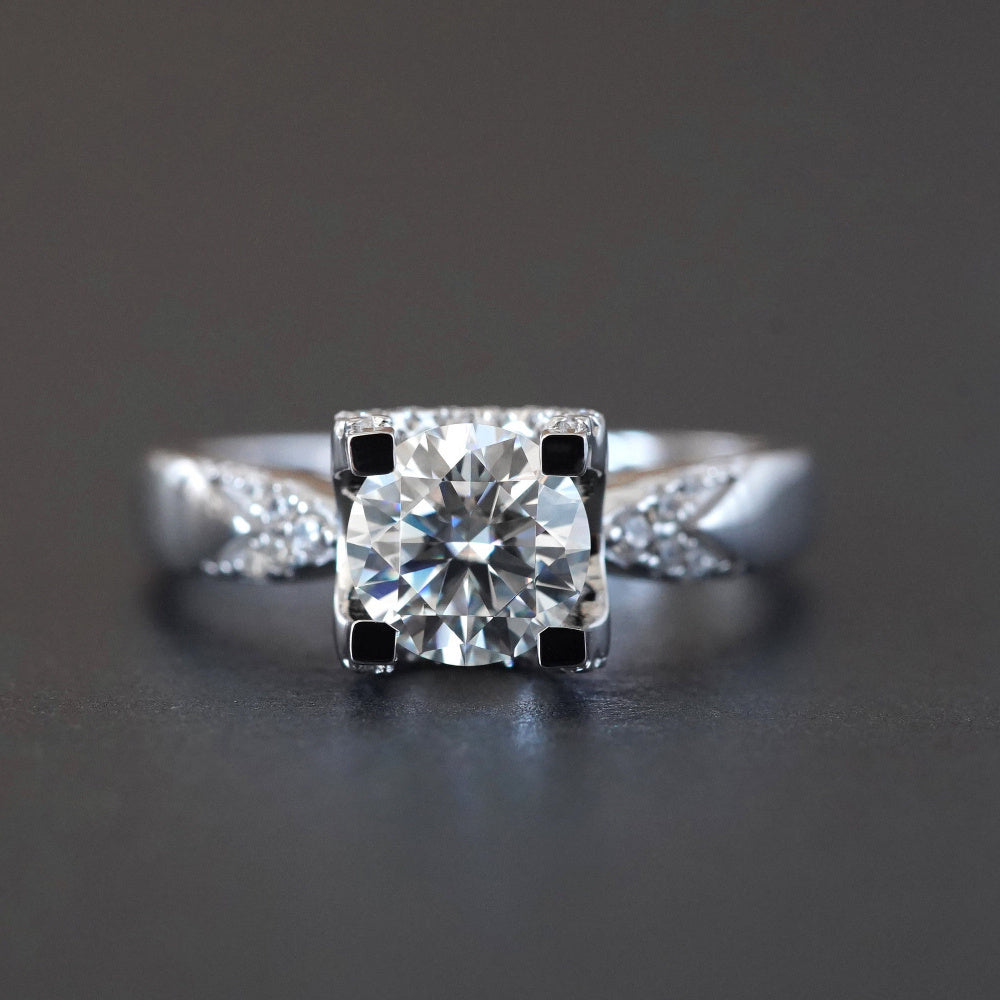 Vintage 925 Sterling Silver Moissanite Engagement Ring Adjustable Band