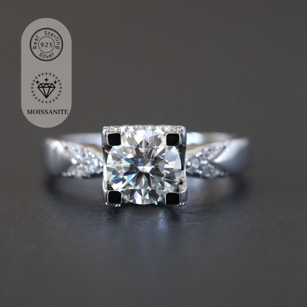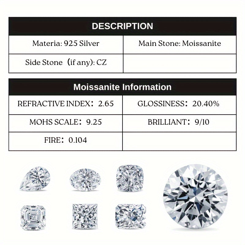 This stunning 925 sterling silver ring features a dazzling moissanite stone. Ideal for daily wear and special occasions, making it the perfect gift for weddings. The adjustable band ensures a comfortable fit.