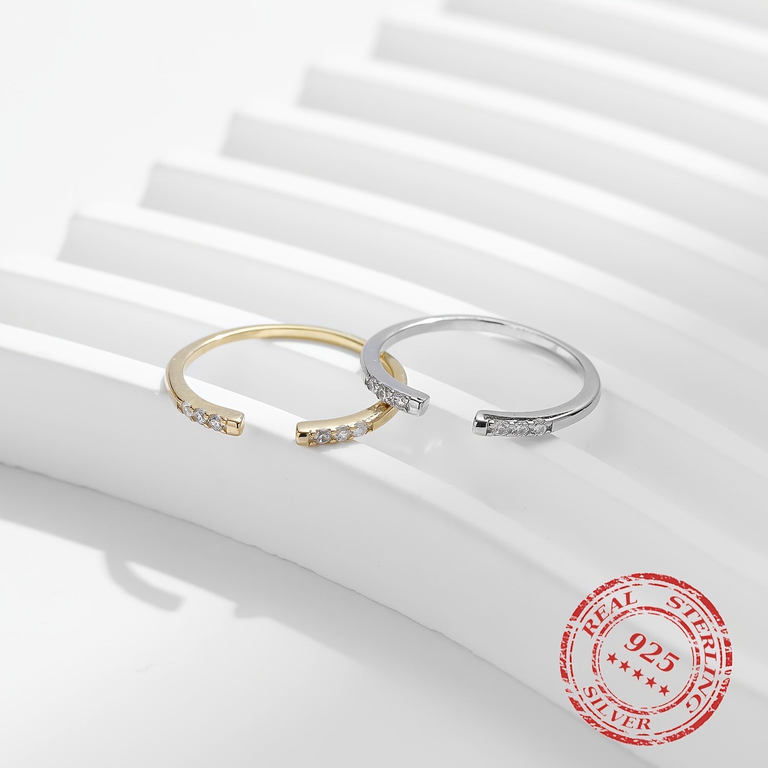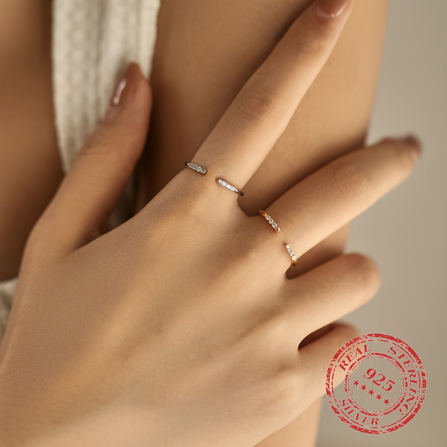 Vintage 925 Sterling Silver Open Ring with Zirconia Inlay