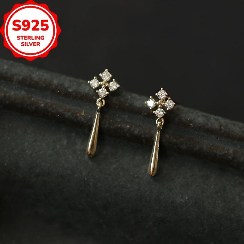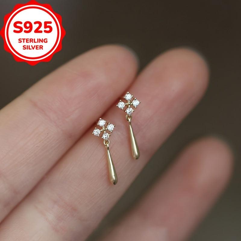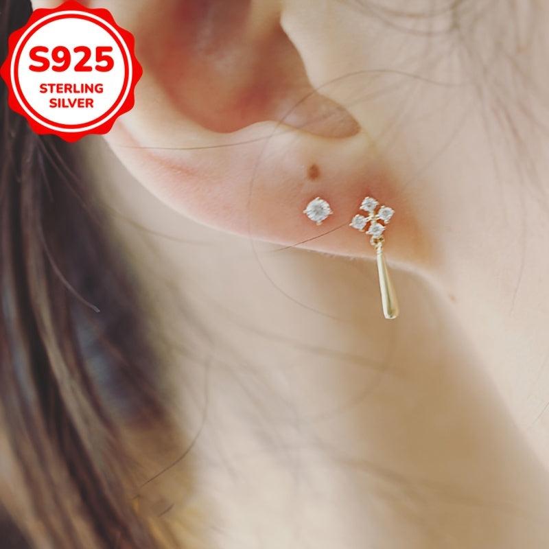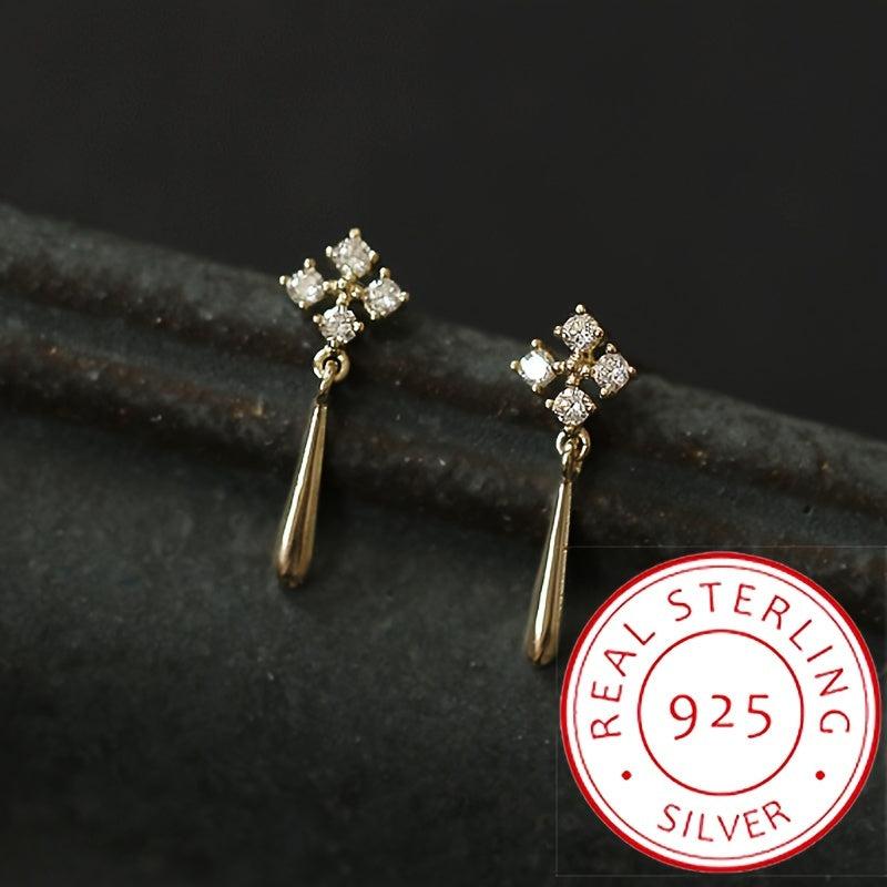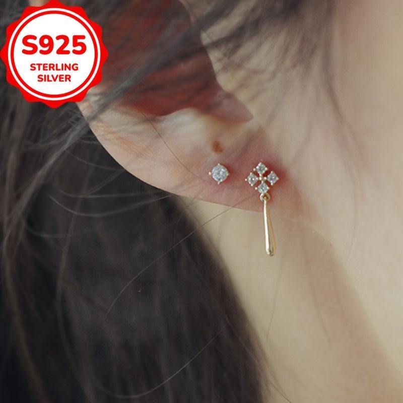 Vintage celestial symbol stud earrings made of 925 sterling silver plated with synthetic zirconia for April birthstone, hypoallergenic.