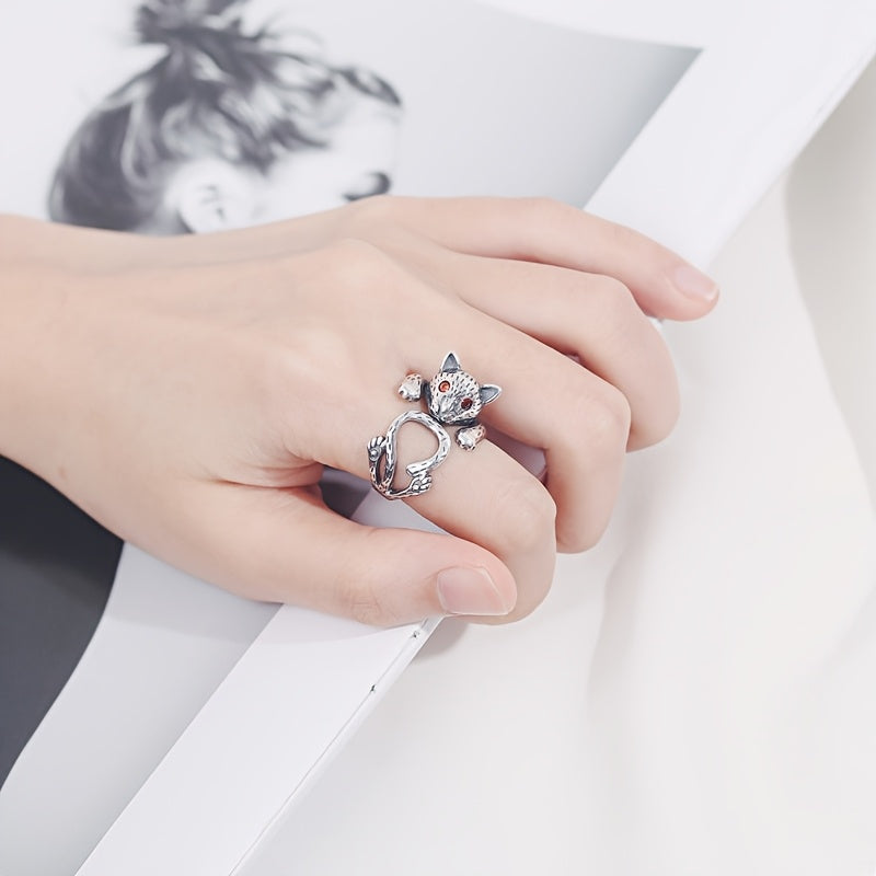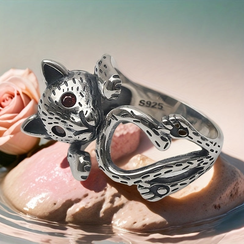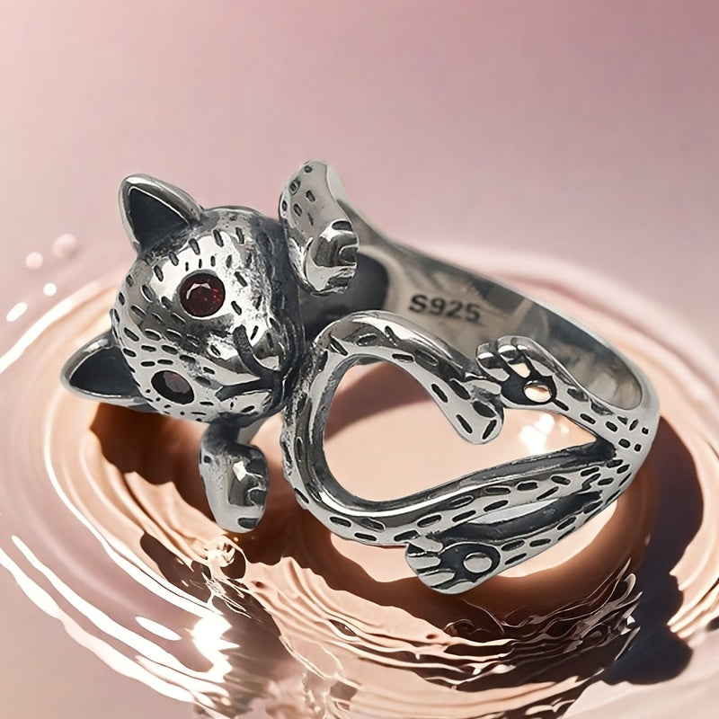 This vintage Claddagh ring is crafted in S925 silver with a cubic zirconia August birthstone. It is silver plated and includes a good luck cat design, making it perfect for anniversaries and birthdays.