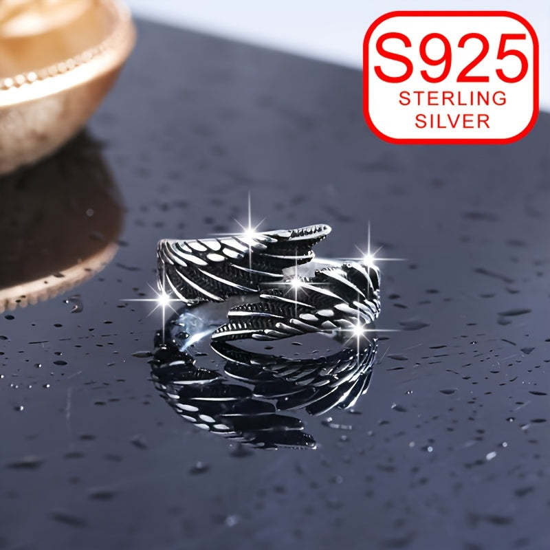 This adjustable feather wing open ring is made of hypoallergenic 925 sterling silver. Perfect for daily wear or festive occasions.