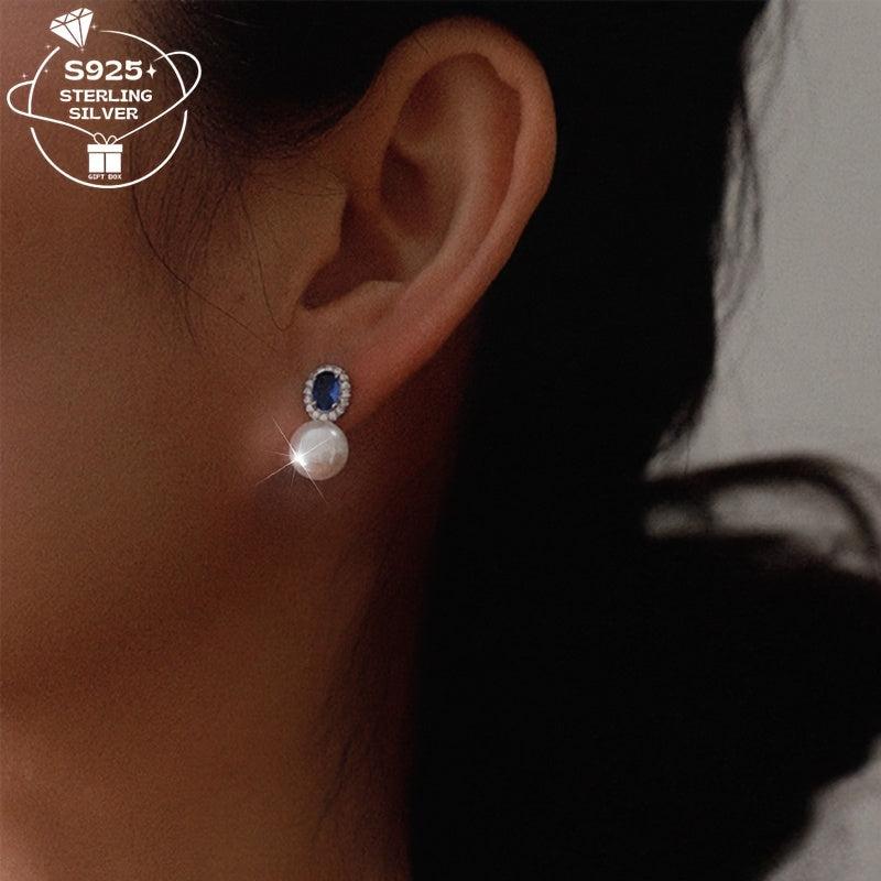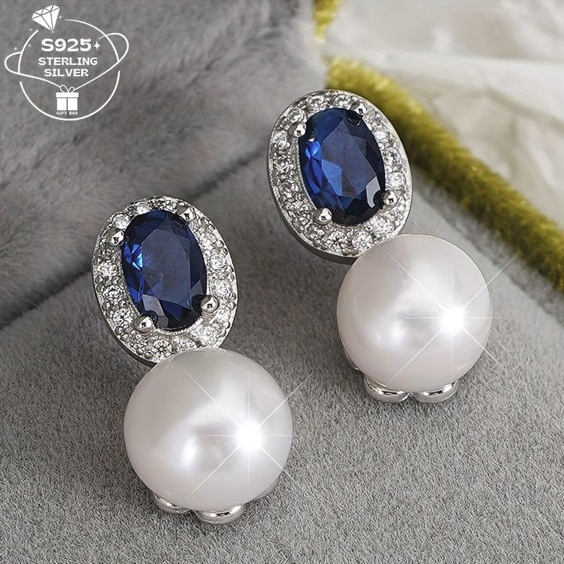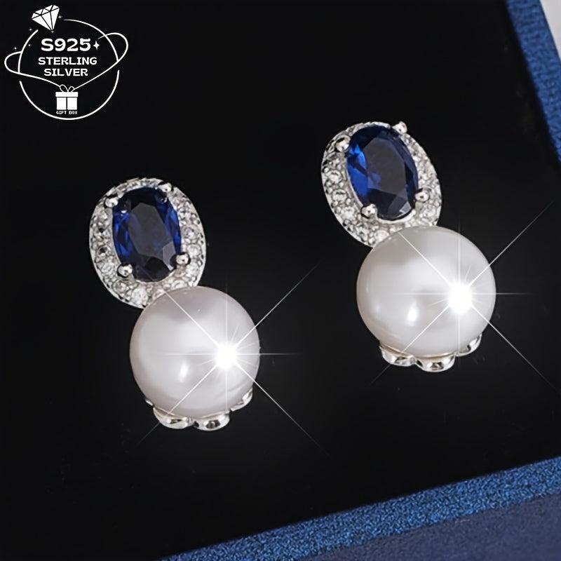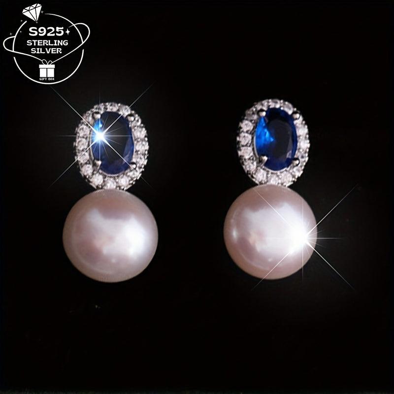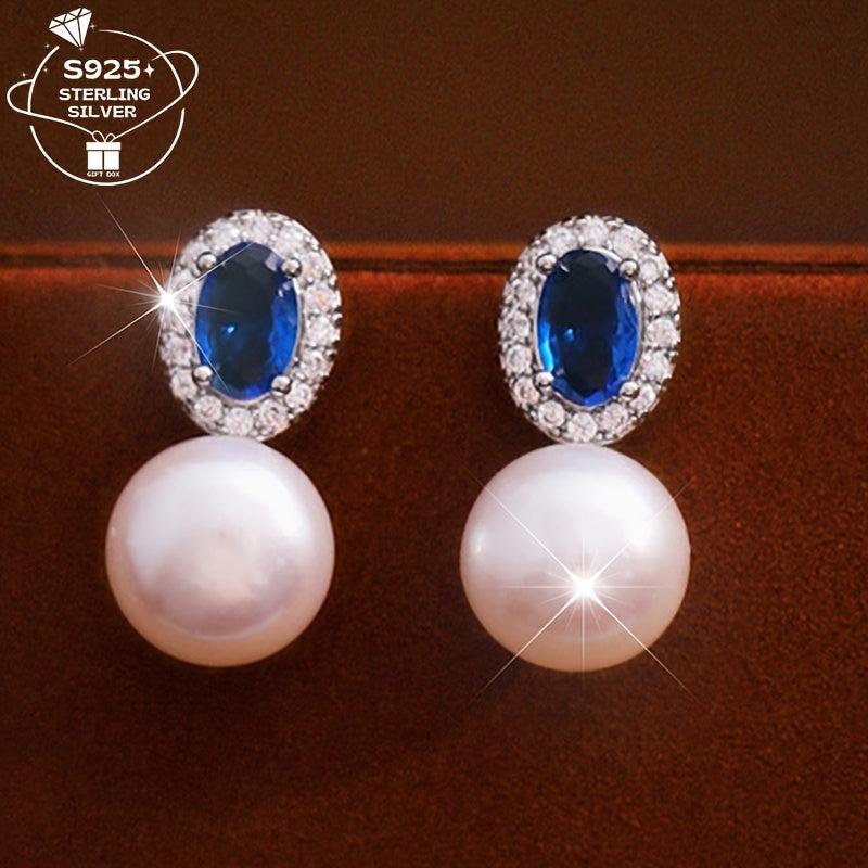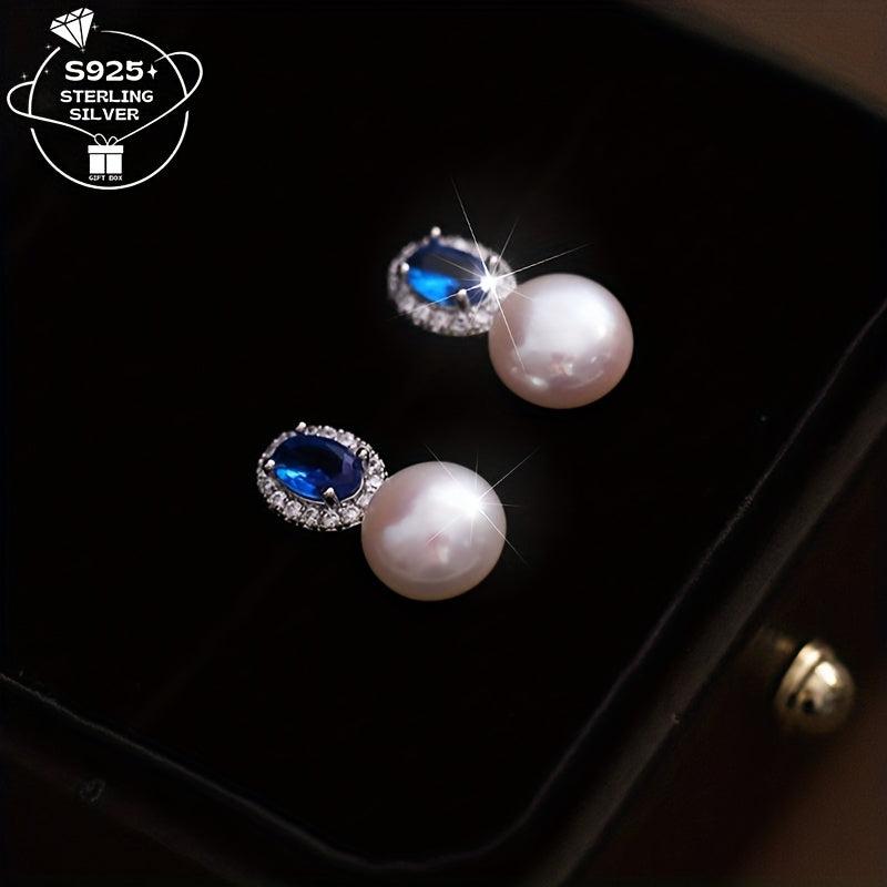 Vintage Freshwater Pearl Stud Earrings 925 Silver Zirconia Stones