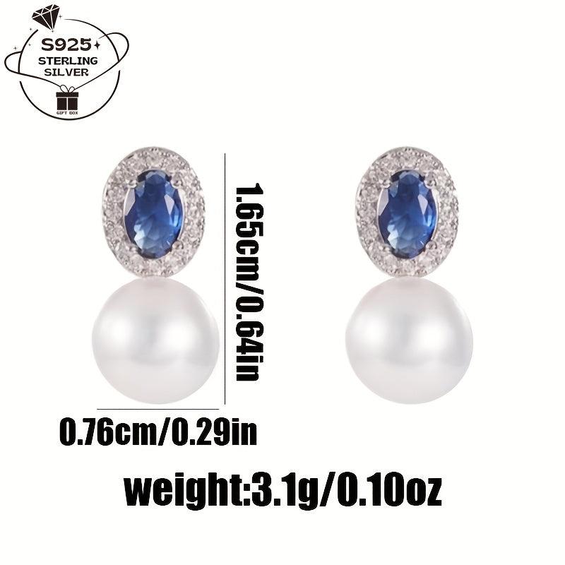 Elegant freshwater pearl studs on hypoallergenic 925 silver with synthetic zirconia stones. Soft and timeless style.