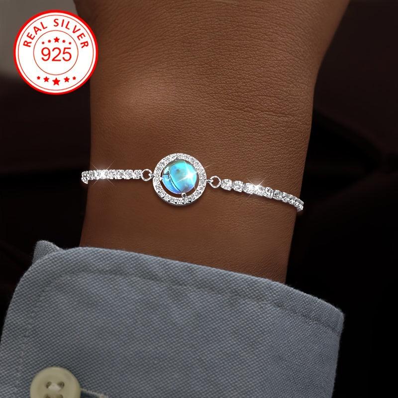 Add a touch of vintage glamour to your look with this stunning tennis bracelet. Crafted from 925 sterling silver, it features synthetic moonstone and cubic zirconia stones. The adjustable chain with expandable beads ensures a perfect fit.