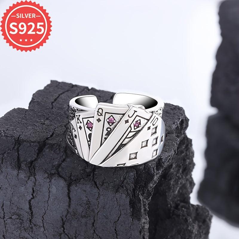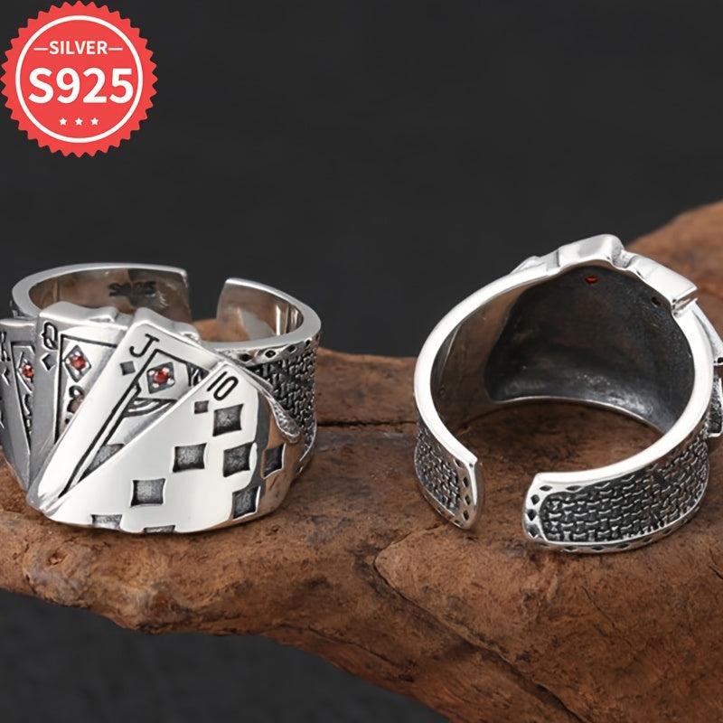 Vintage Poker Ring 925 Sterling Silver Men's Open Band Adjustable Hypoallergenic