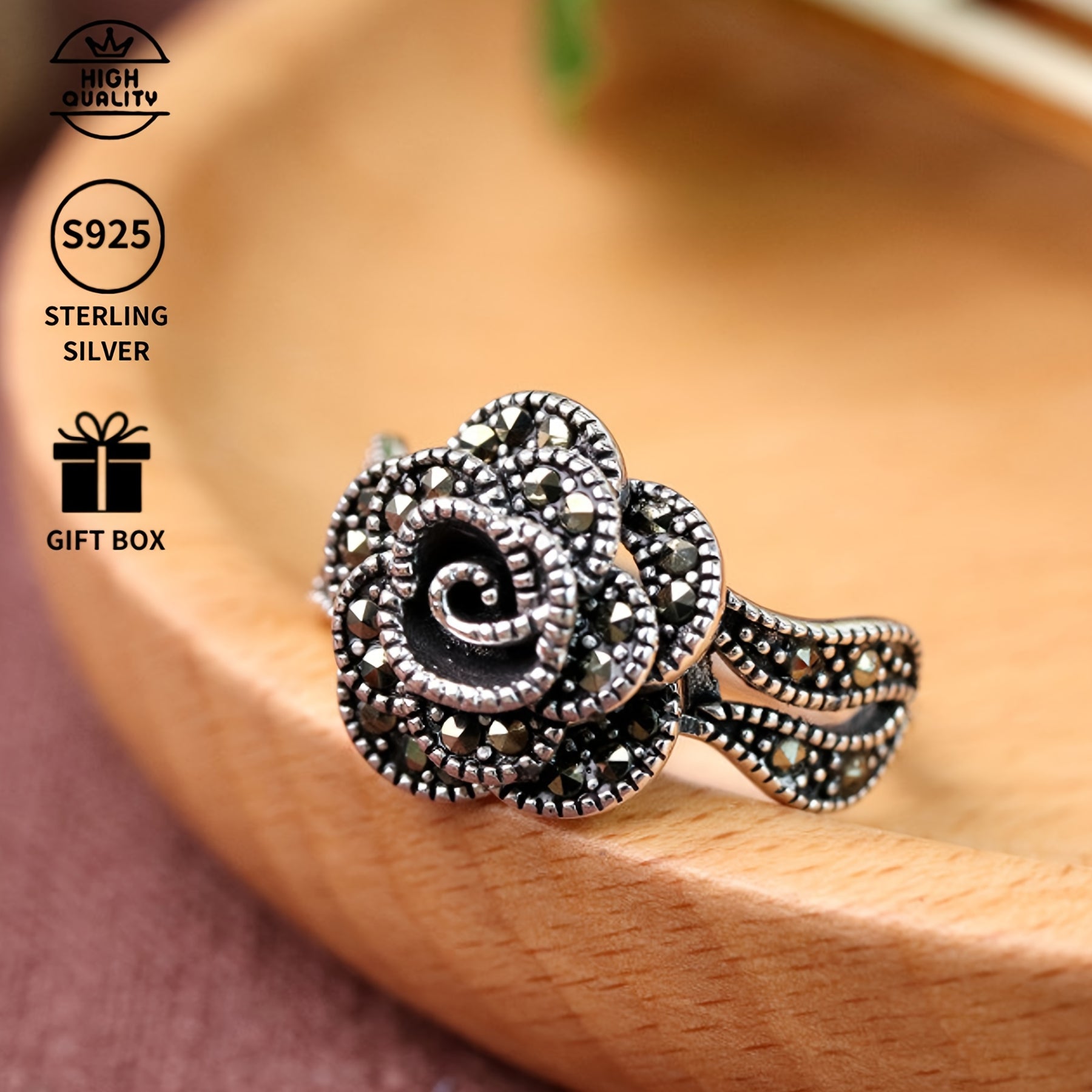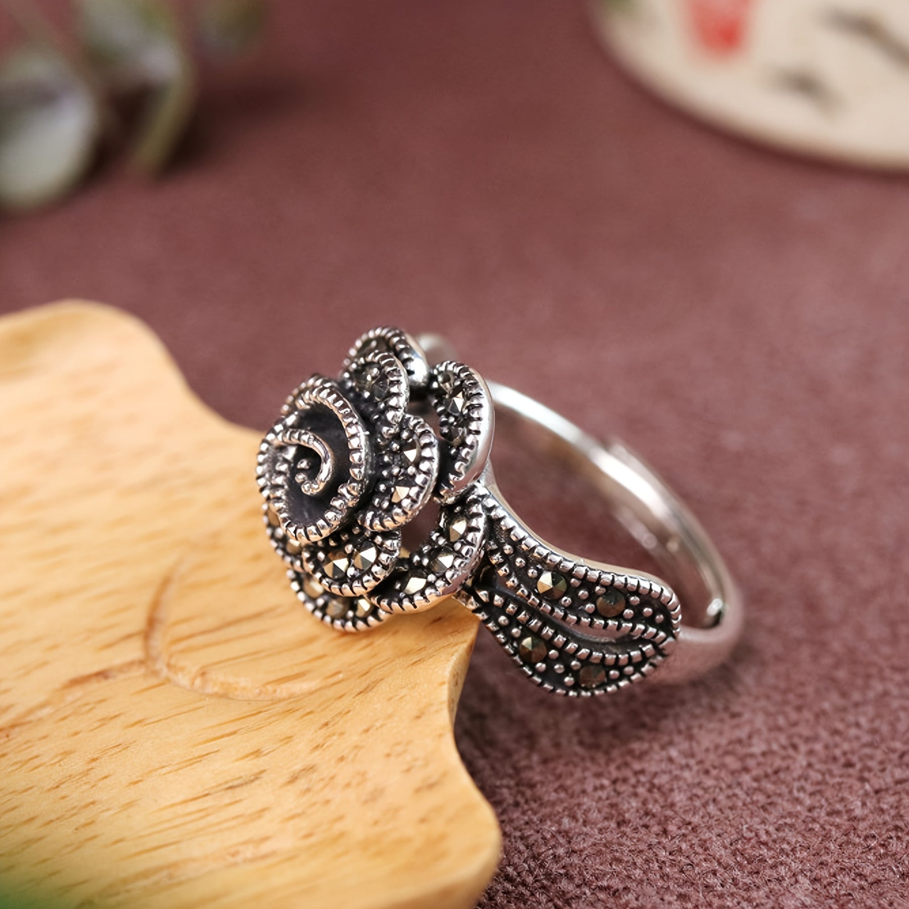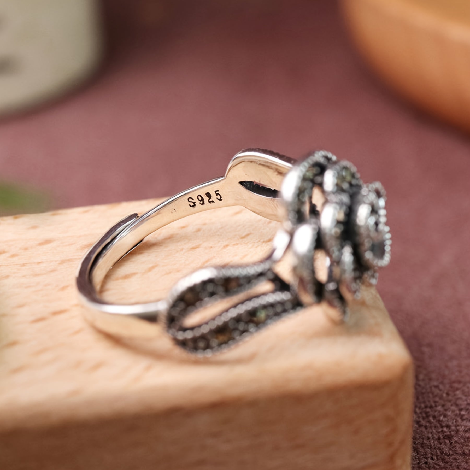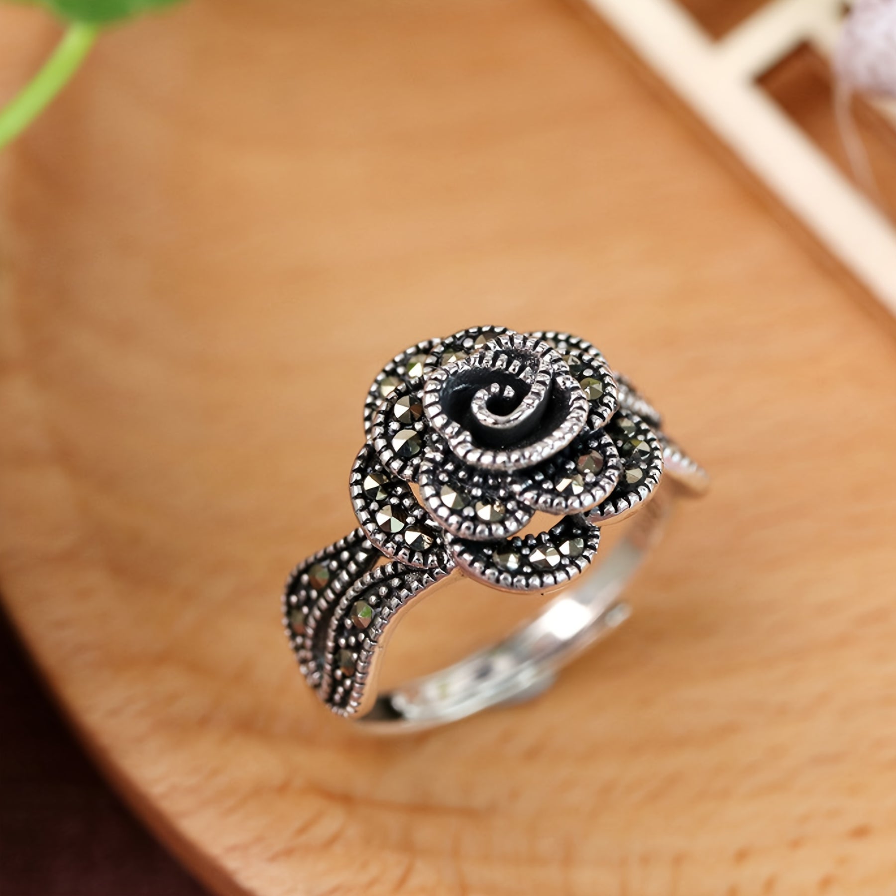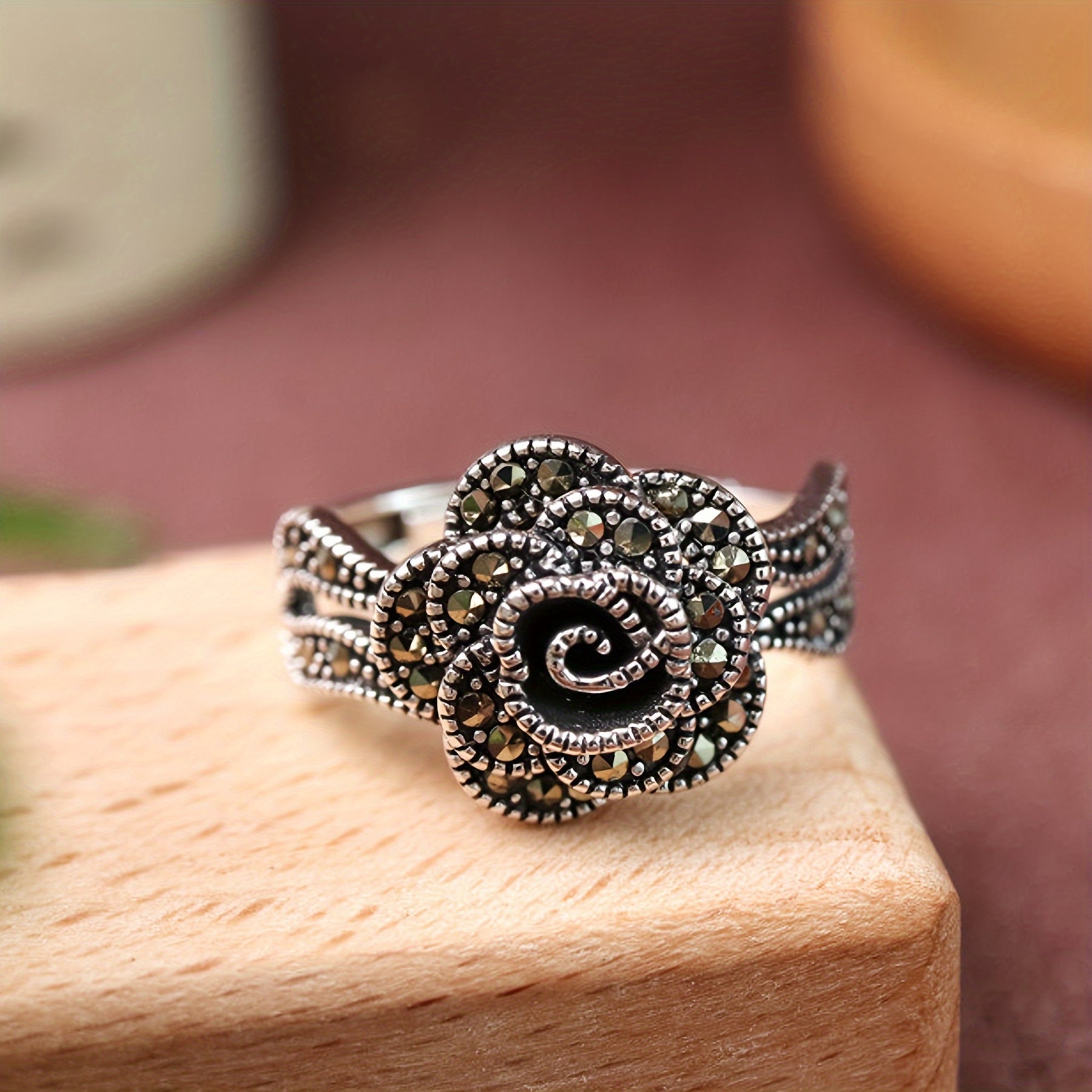 Elegant vintage-style ring featuring a rose flower design with synthetic gemstones. Perfect for daily wear or special occasions.