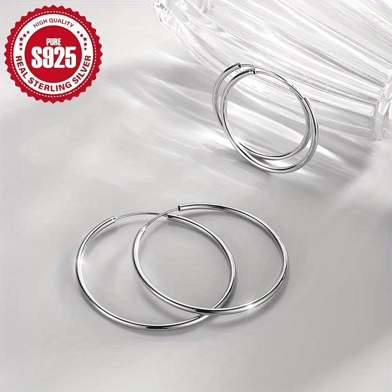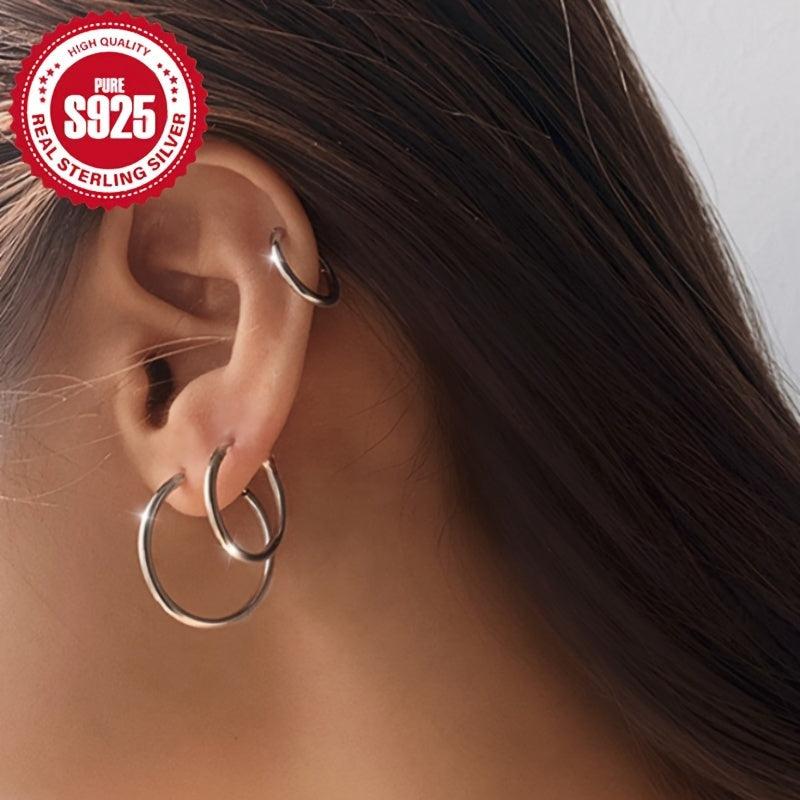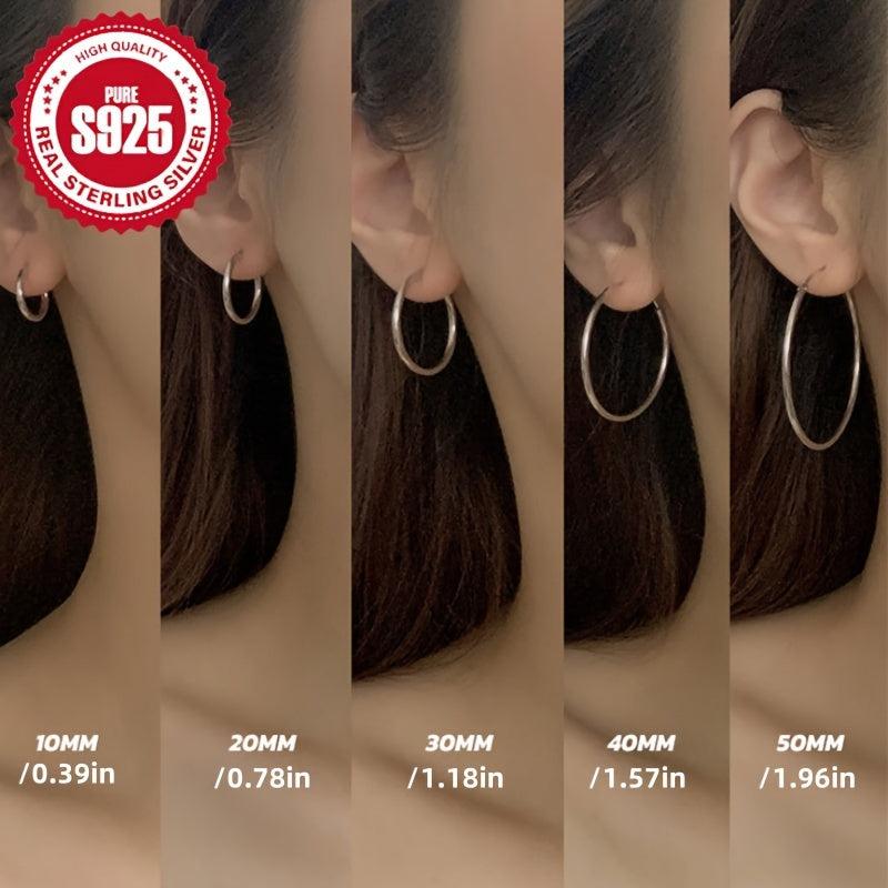 Add a touch of elegance to your outfit with these versatile circle earrings. Made of S925 silver, they are hypoallergenic and available in 10mm, 20mm, 30mm, 40mm, and 50mm sizes.