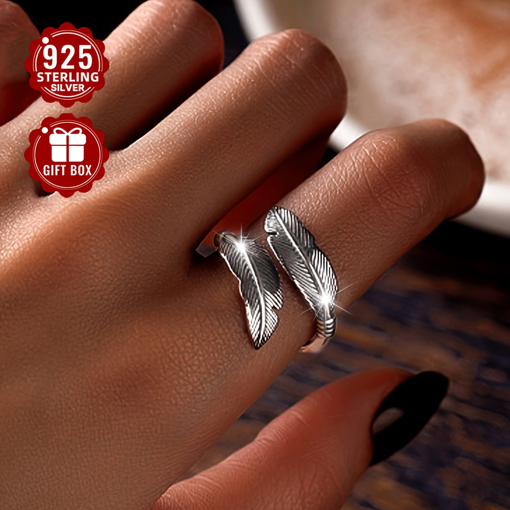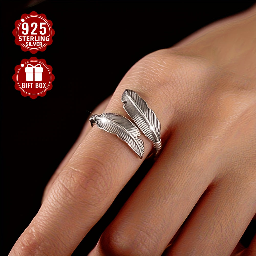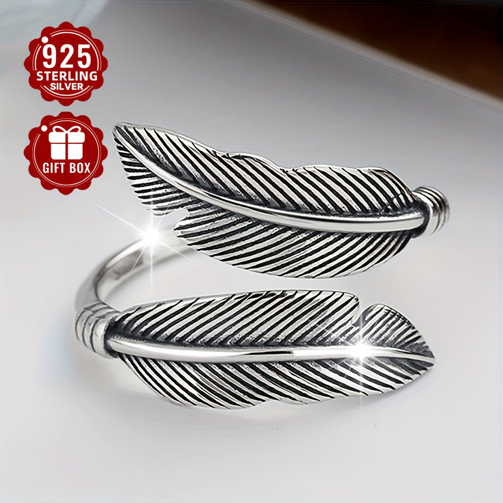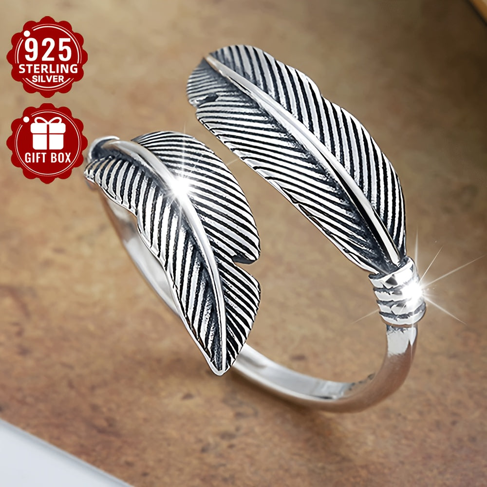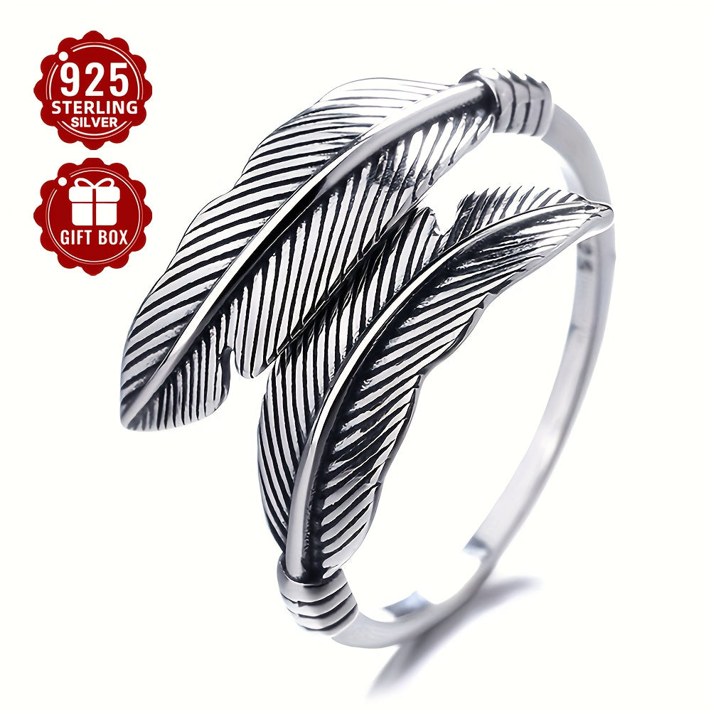 This vintage distressed ring features a silvery ginkgo feather design crafted from 925 sterling silver. The artistic and simplistic style exudes an aloof vibe, perfect for ladies with a unique sense of fashion.