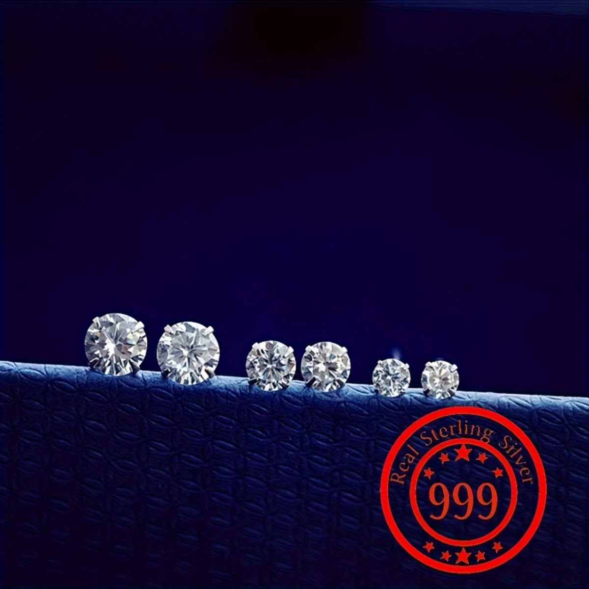 Add a touch of elegance with this set of 3 sterling silver stud earrings featuring synthetic zirconia. A perfect choice for everyday wear or as a December birthstone jewelry. No plating, just pure silver.
