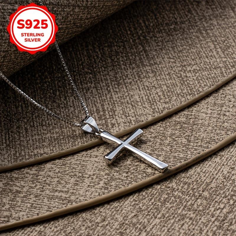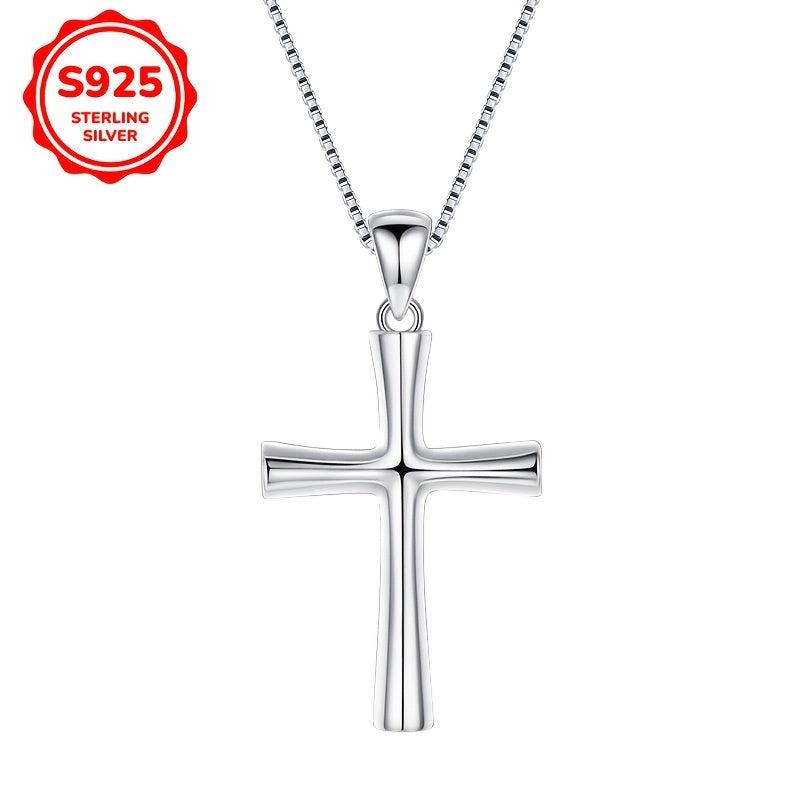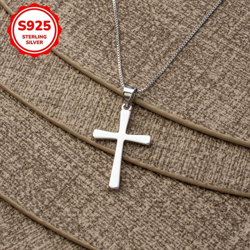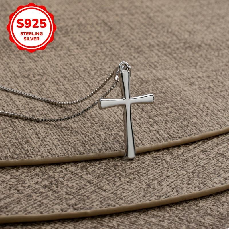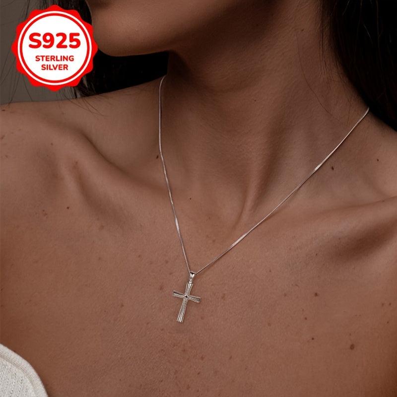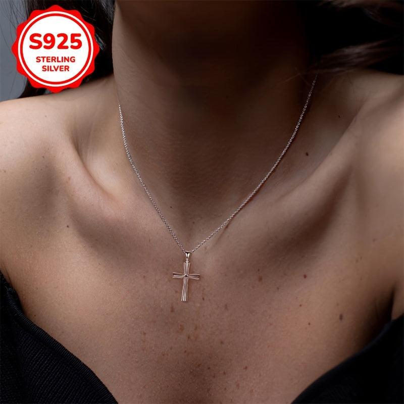 Elegant and fashionable pendant necklace designed with a cross shape in 925 silvery, weighing 2.6g. Perfect for vacations or as a Mother's Day gift.