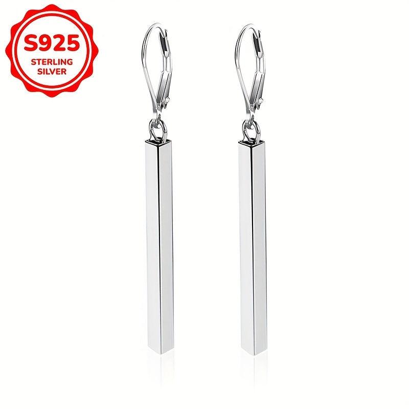 Add a touch of elegance with these dangle square bar earrings. Made of 925 silvery material, these lightweight earrings are perfect for daily wear or as a holiday gift.