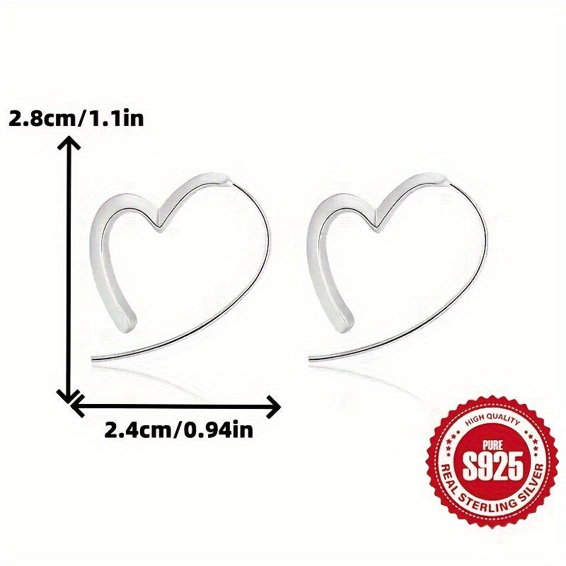 Women's Heart Outline Earrings S925 Sterling Silver Music Festival Party Jewelry