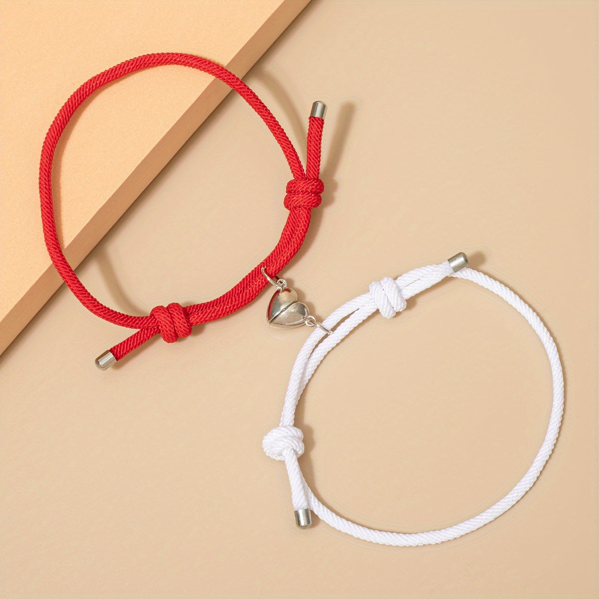 2pcs Love Heart Magnet Buckle Bracelets Couple Set Accessories