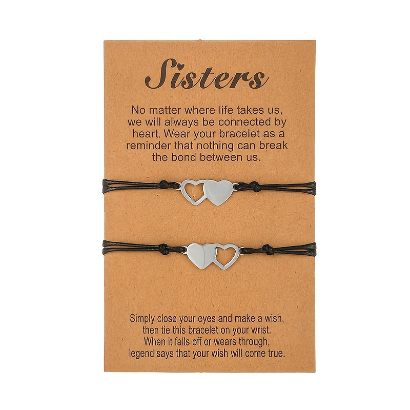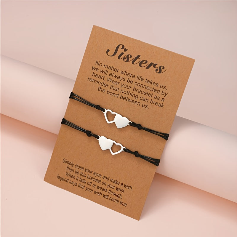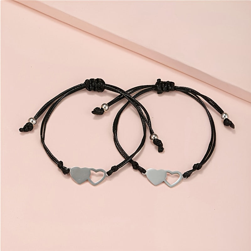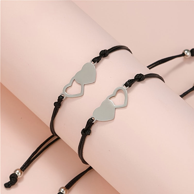 This 2-piece set features stainless steel bracelets with hollow love charms, hand-woven design for a stylish look.