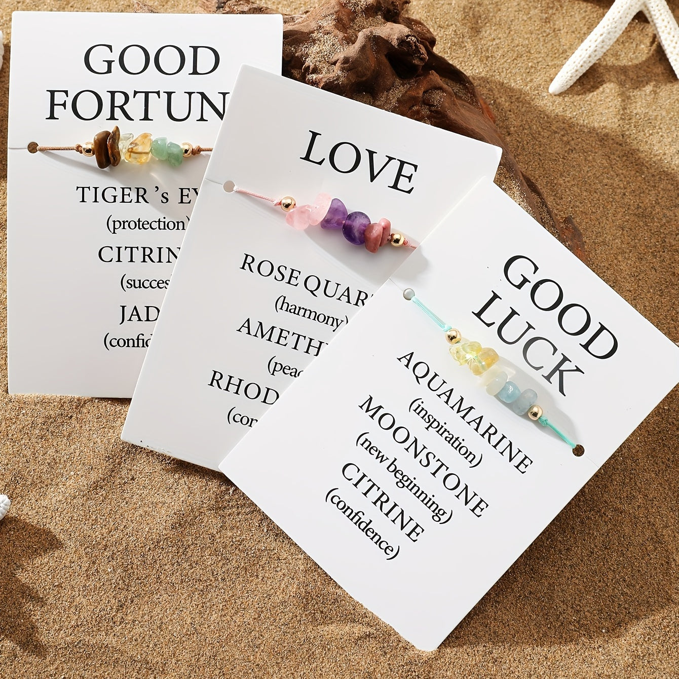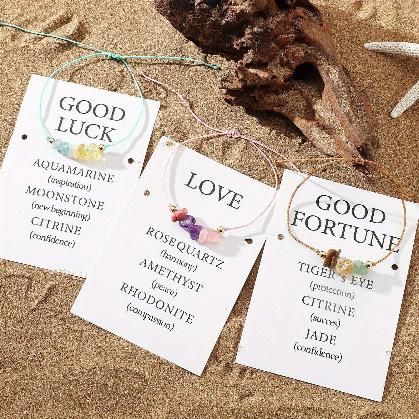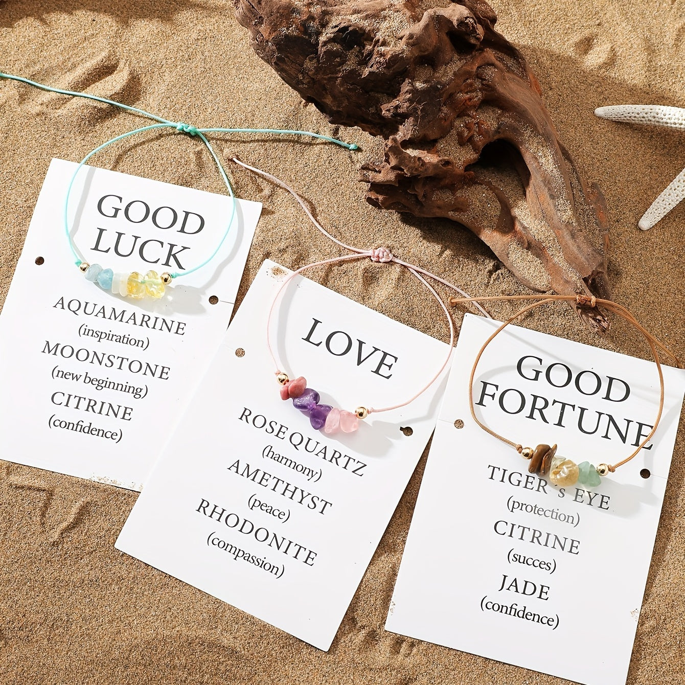 This set includes 3 hand rope bracelets made of natural crushed stone beads. A perfect gift for women or couples on birthdays or special occasions.