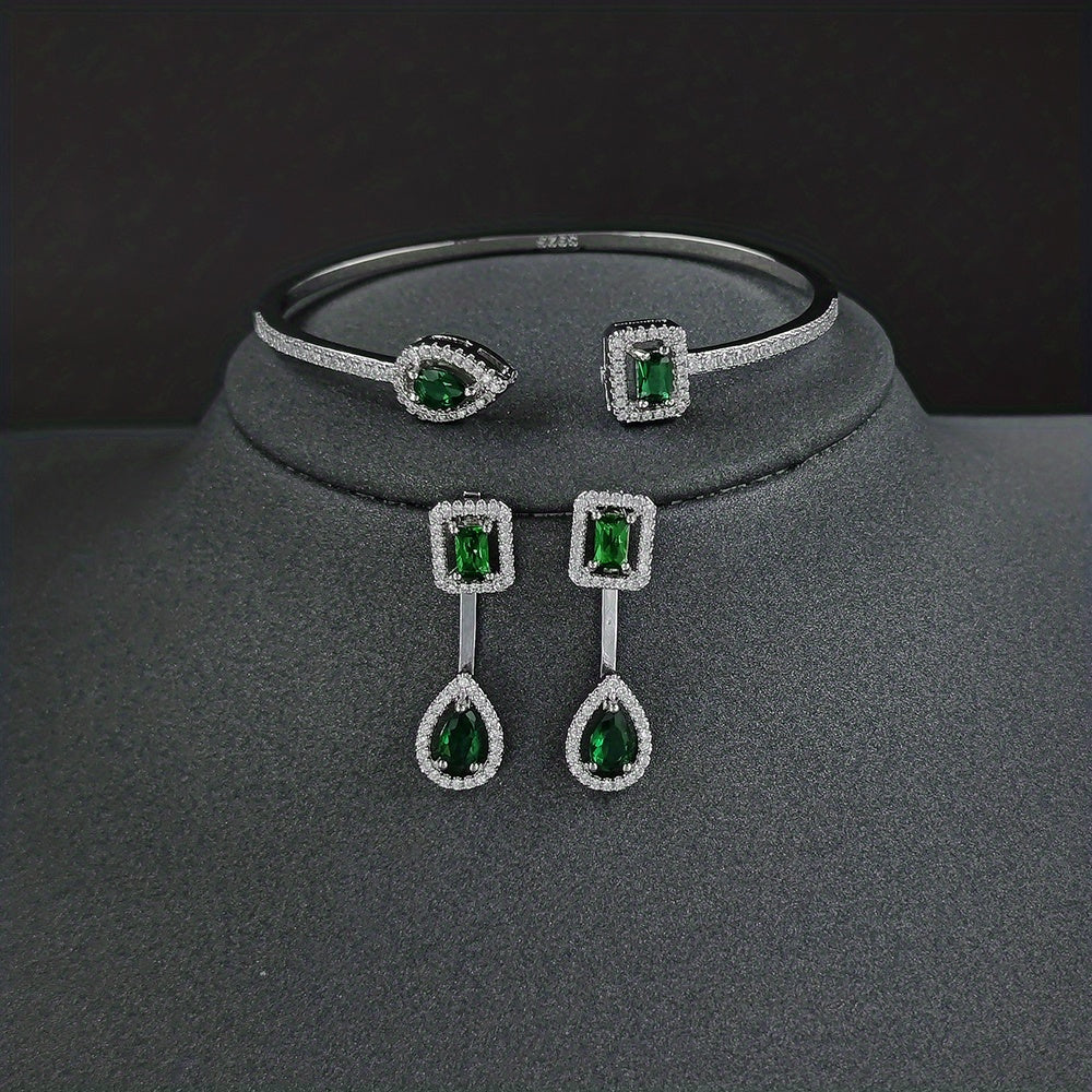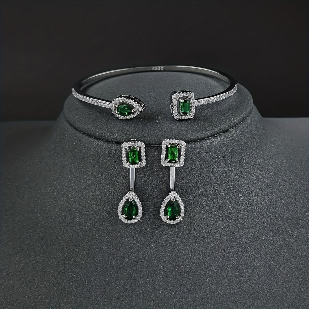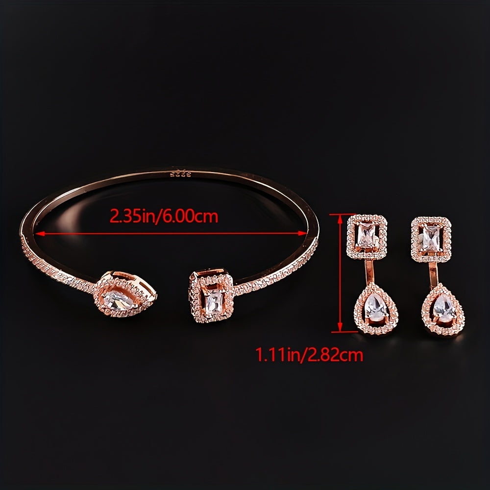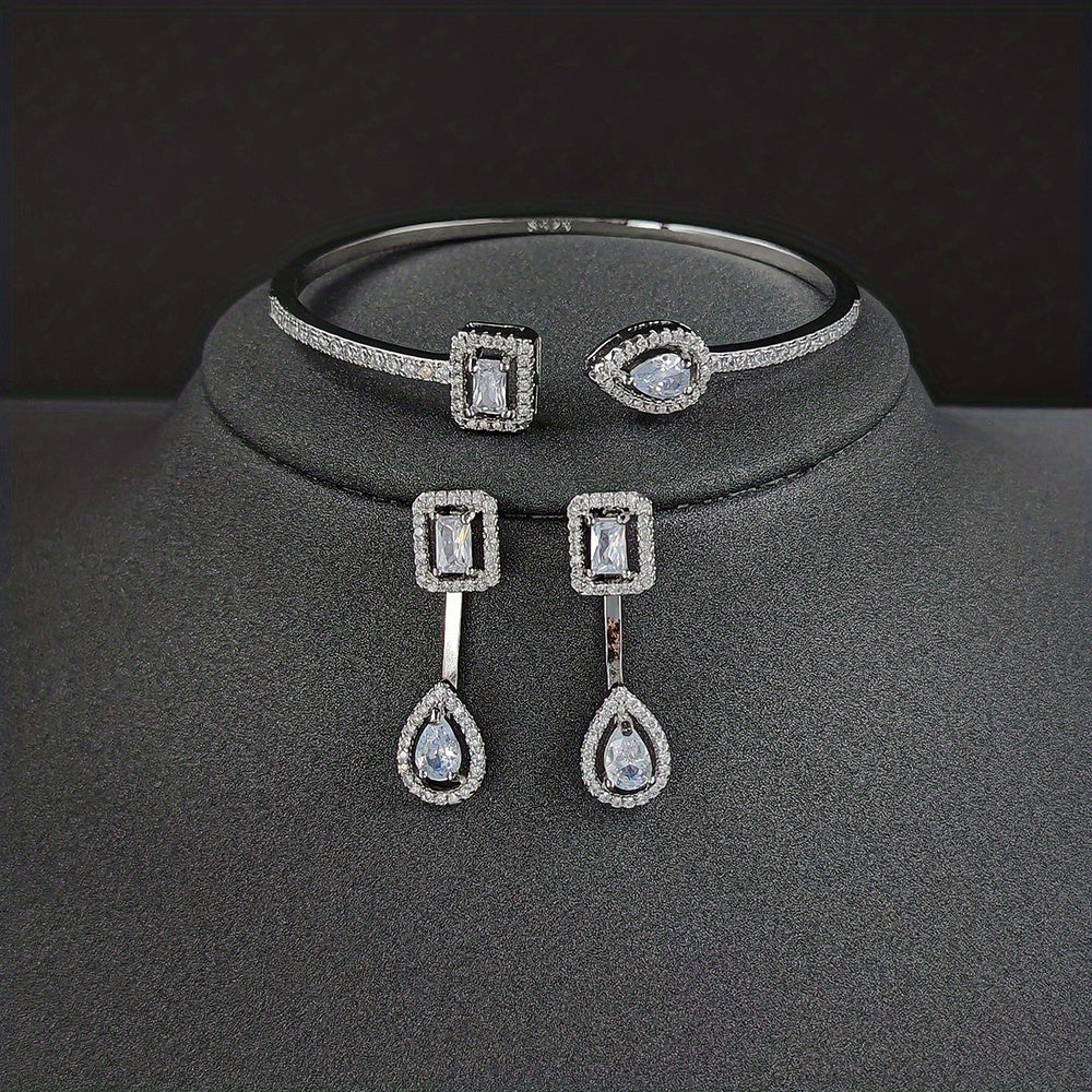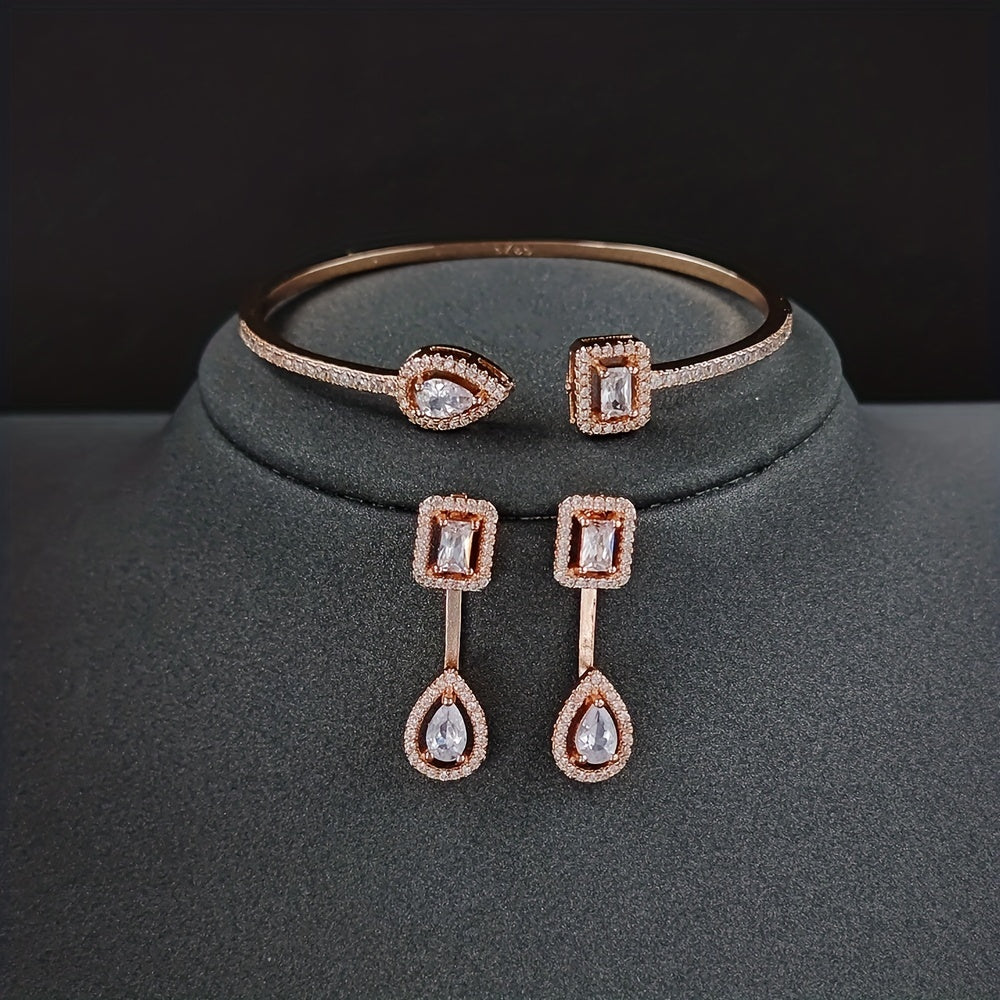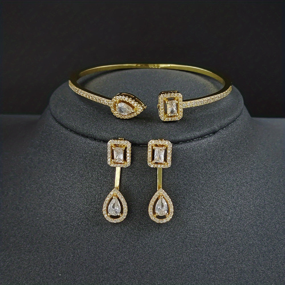 This 3-piece jewelry set includes earrings and a bracelet. Crafted with 18k gold plating and inlaid with sparkling zircon stones, it adds a touch of elegance to everyday outfits or evening party attire.