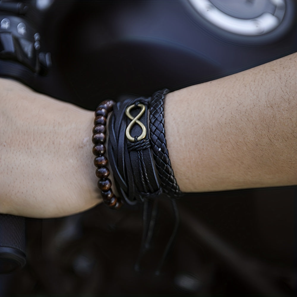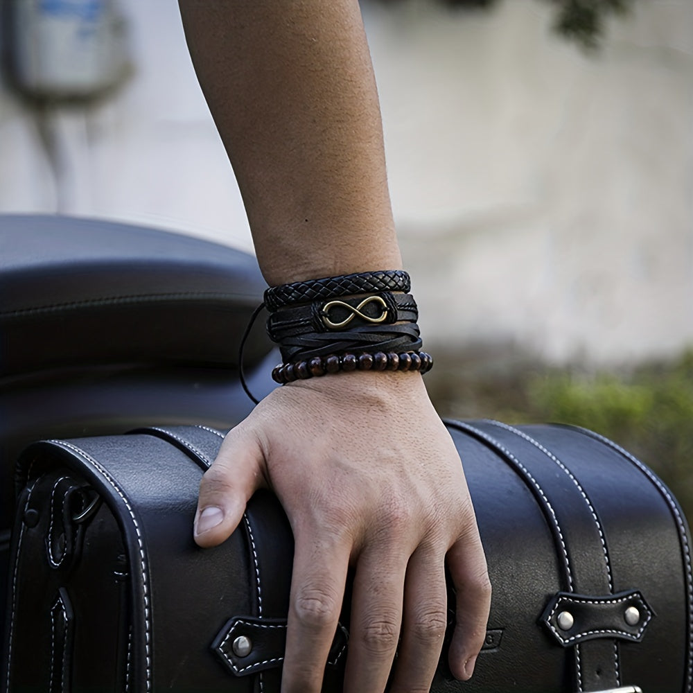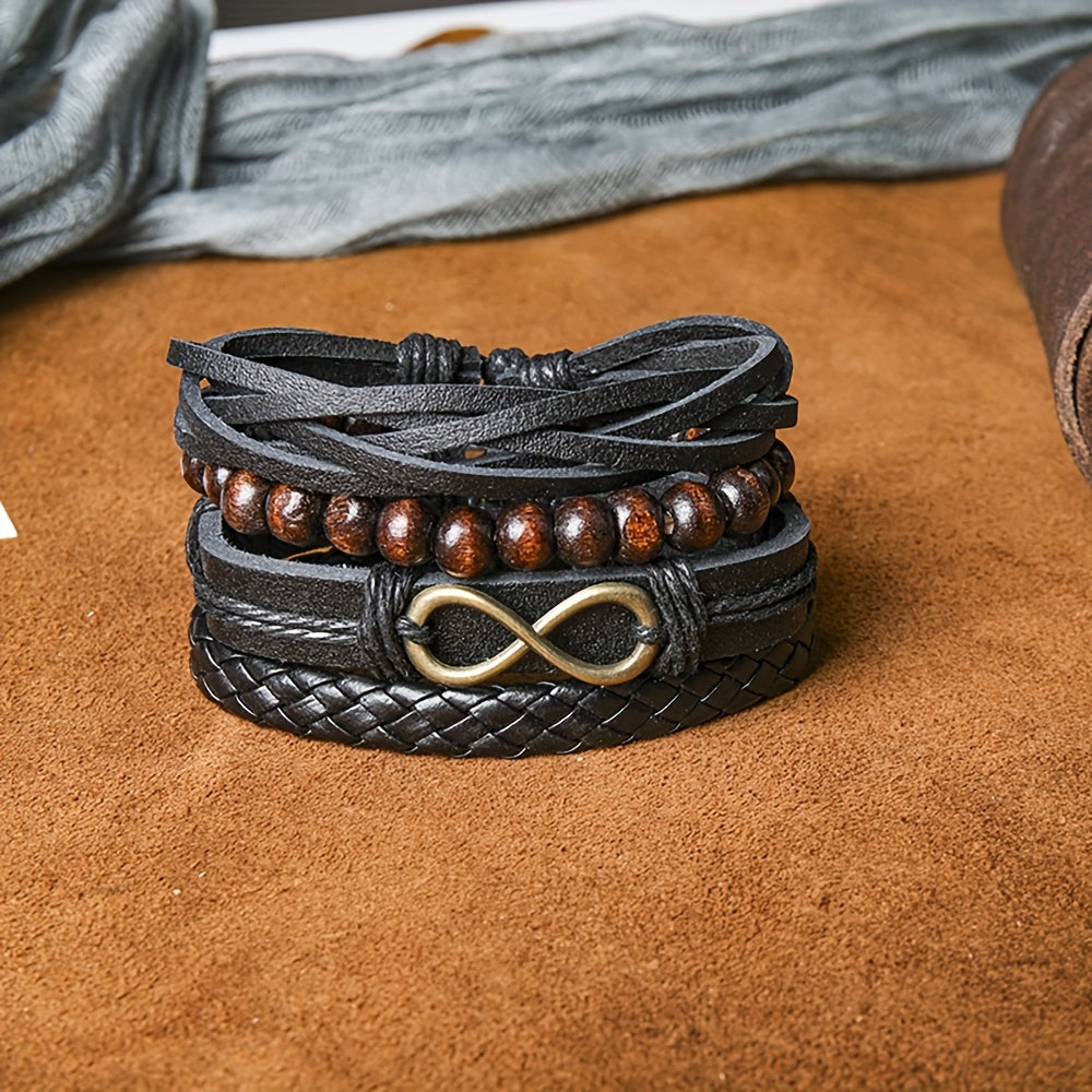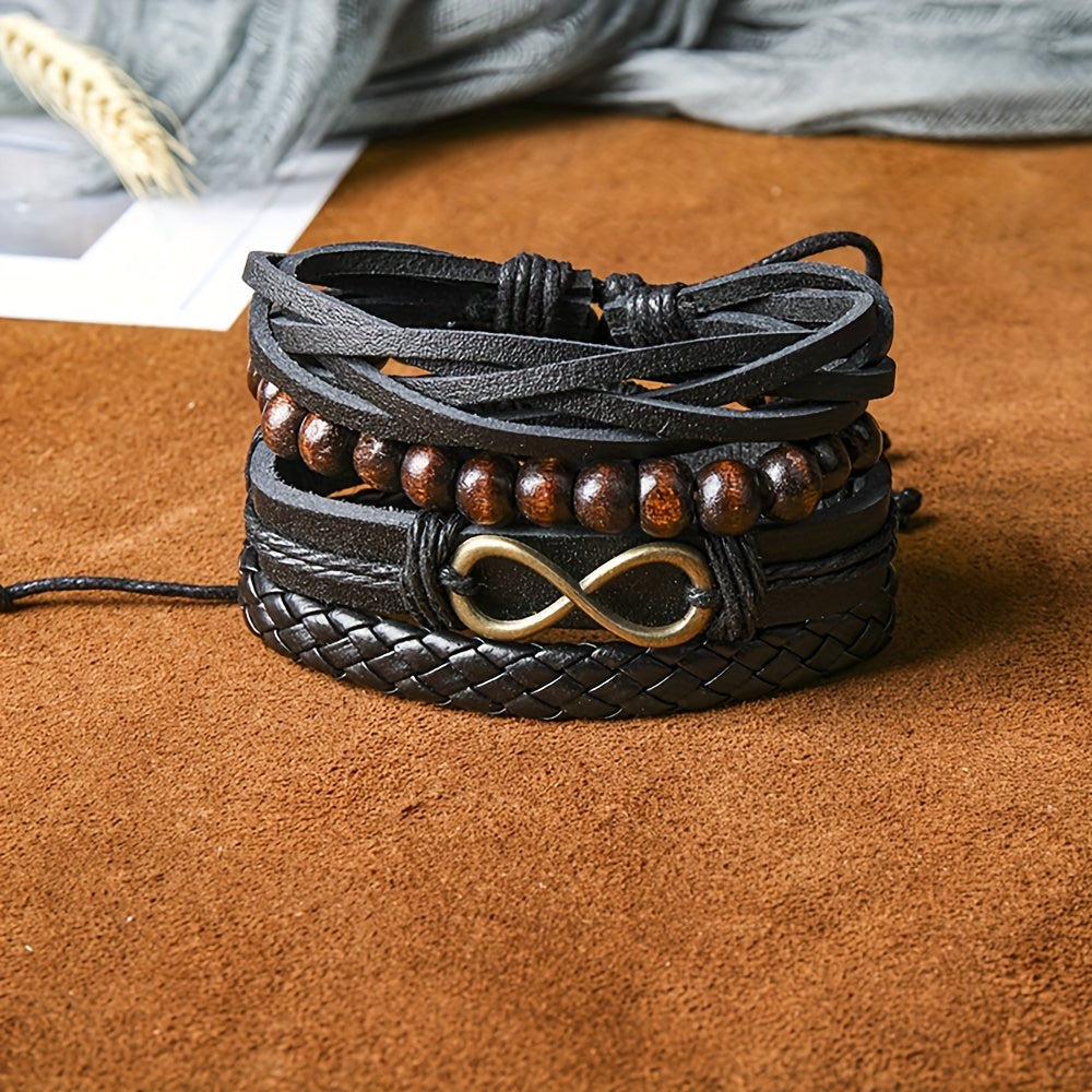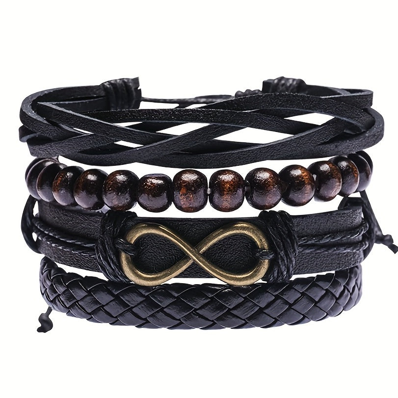 4pcs Braided Bracelet Set Men's Vintage Jewelry