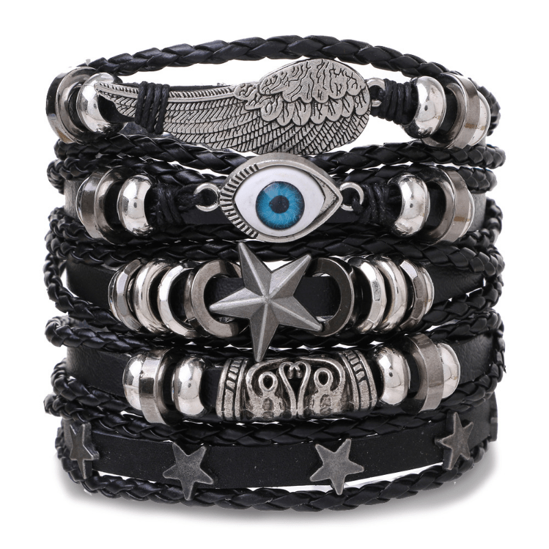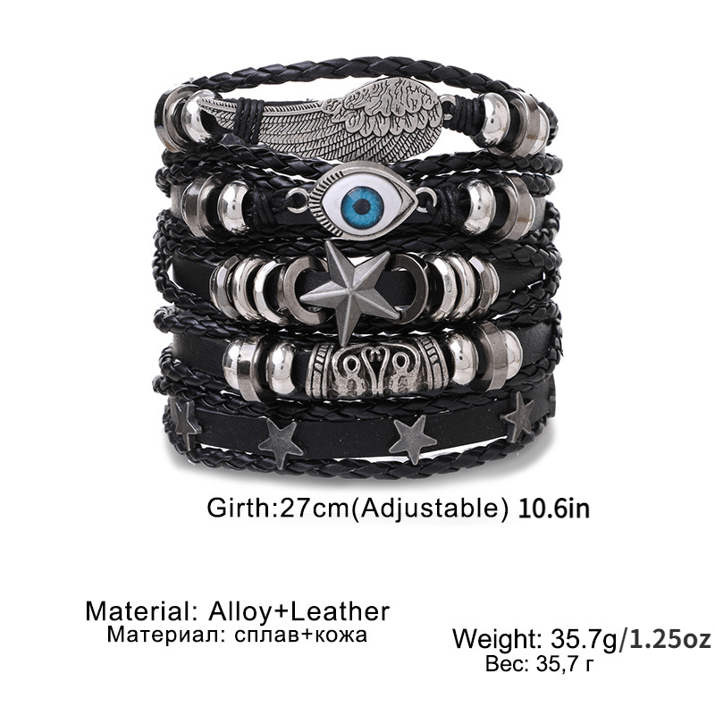 Enhance your style with this 5-piece set of men's layer leather bracelets. These bracelets are adjustable and crafted from high-quality leather to add a touch of elegance to your look.