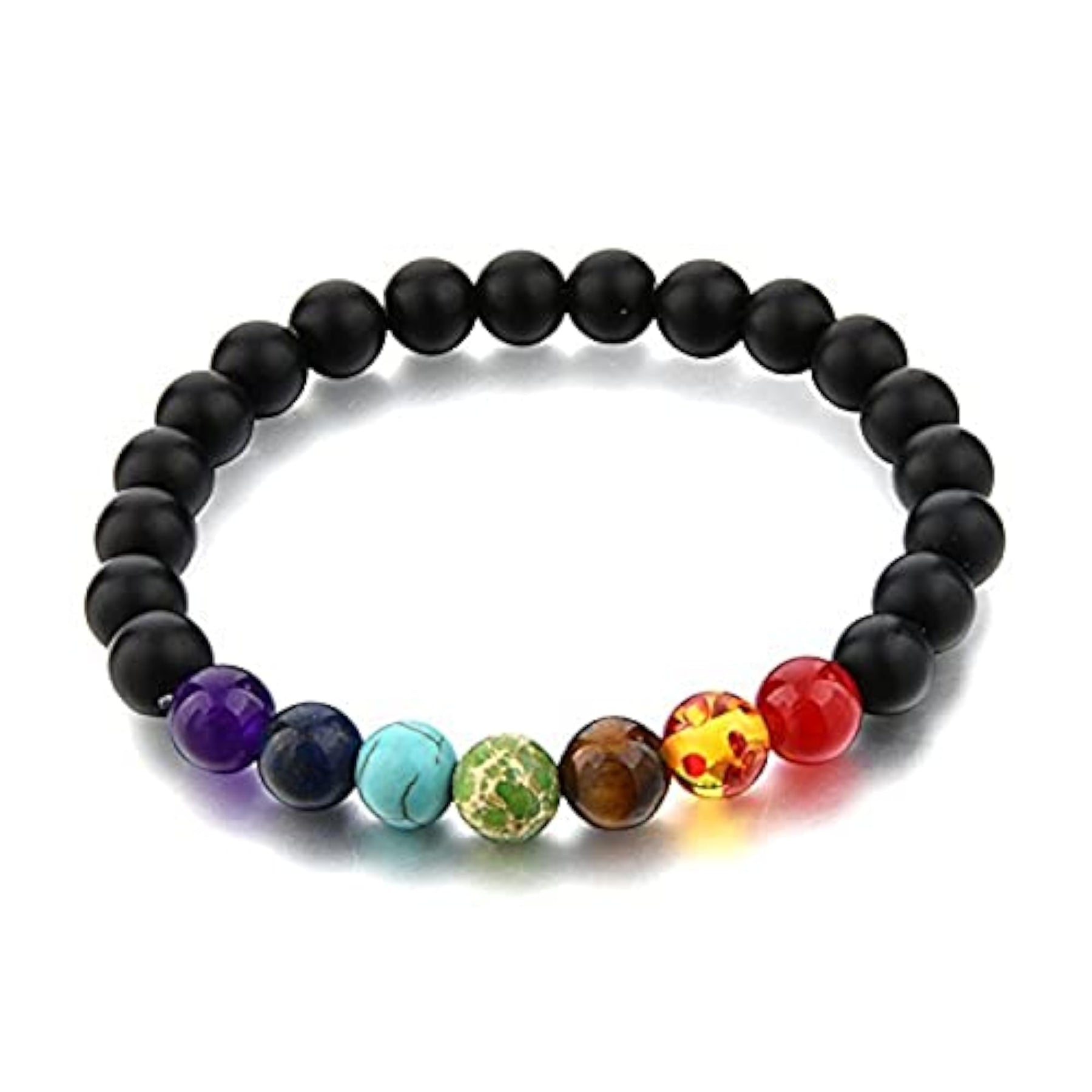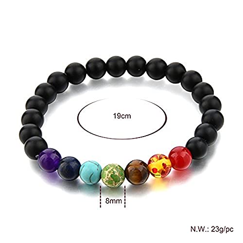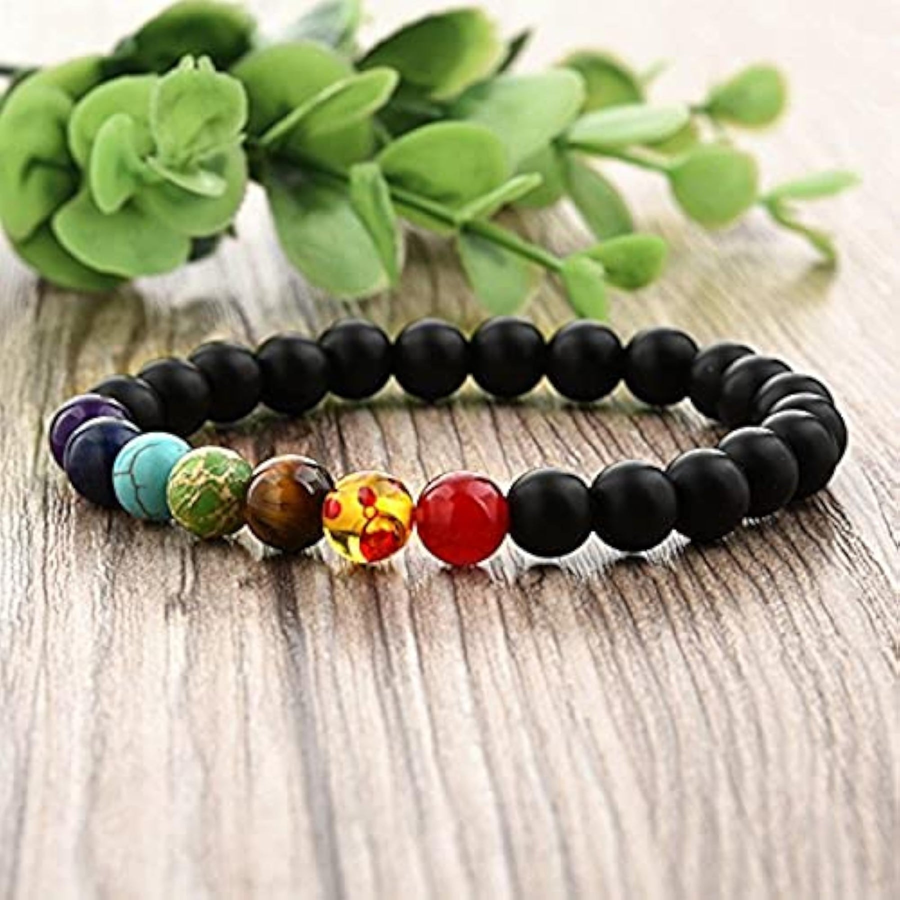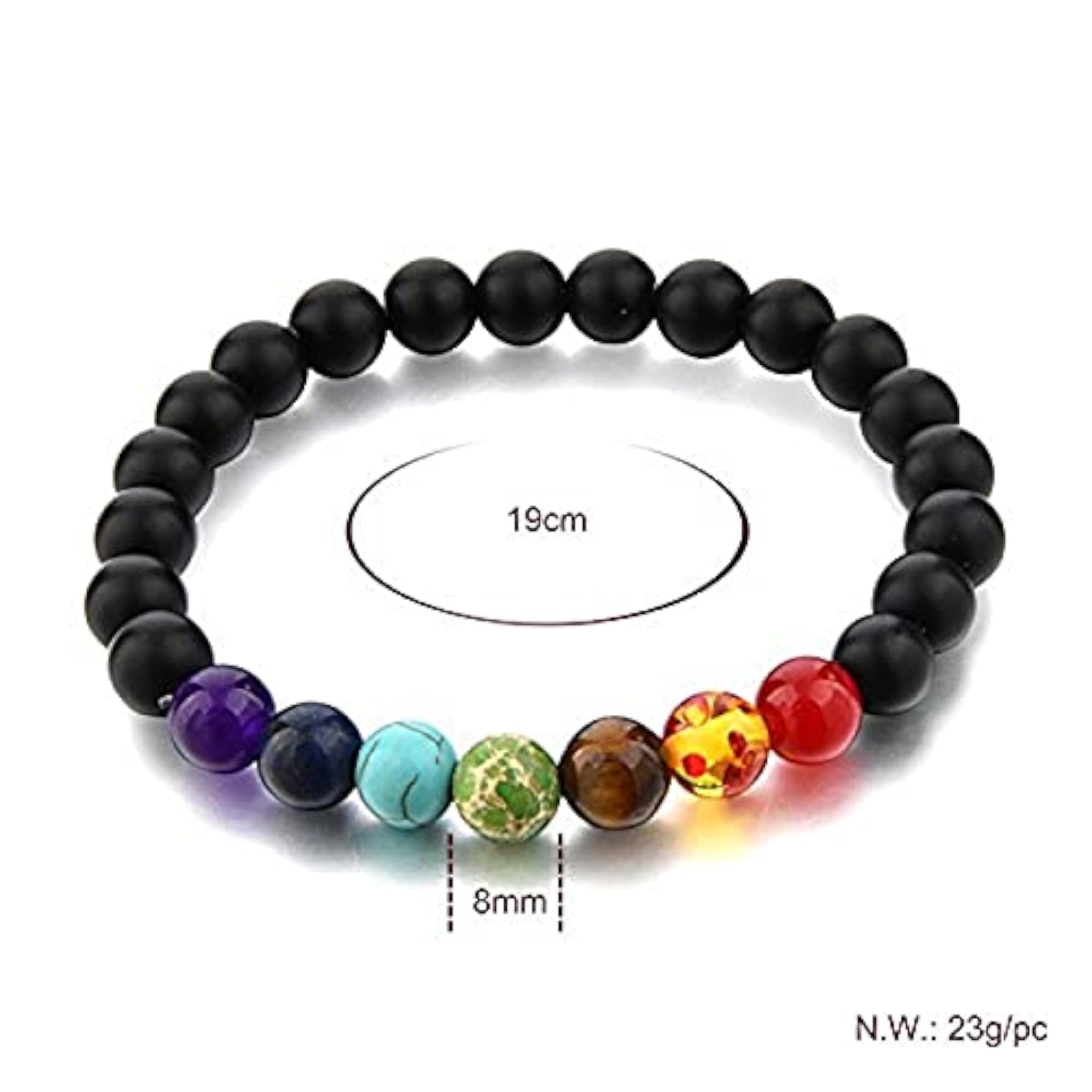 This unisex-adult bracelet features 7 chakra natural stones for triple protection.