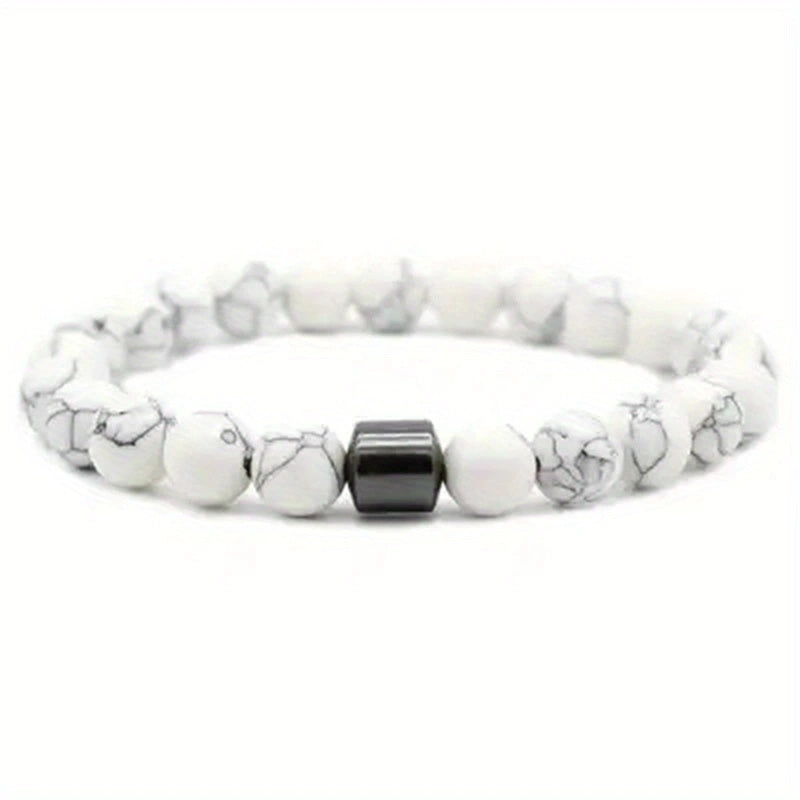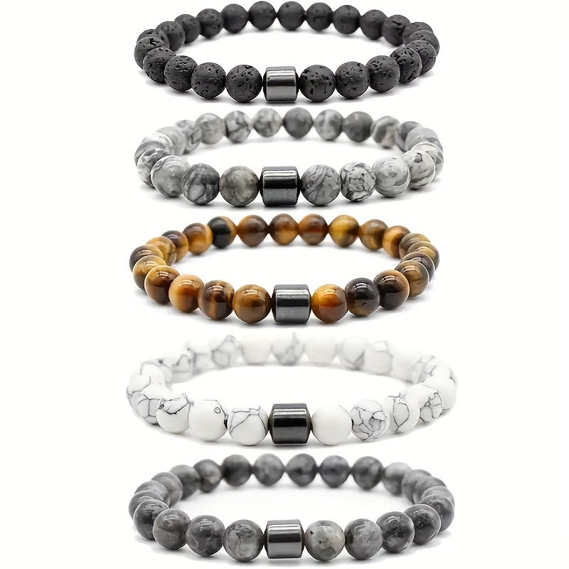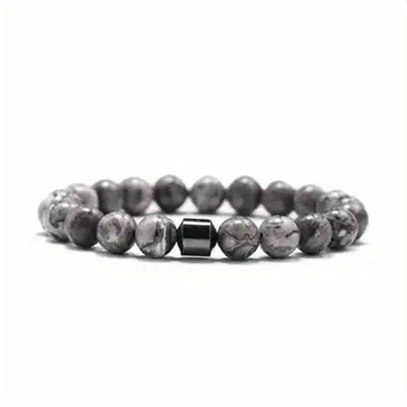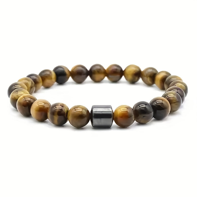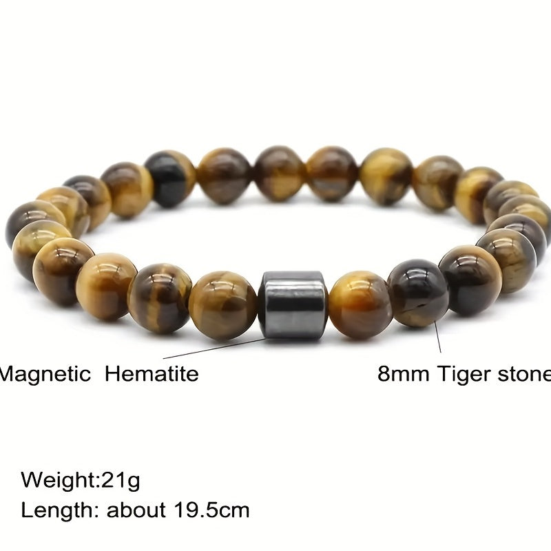 This bracelet features 8MM natural stone beads that are believed to have healing properties. It is a stretch bracelet suitable for men. Add a touch of style and positive energy to your attire with this gemstone bead bracelet.