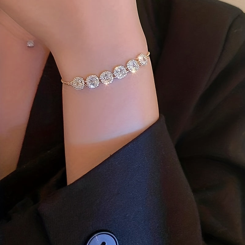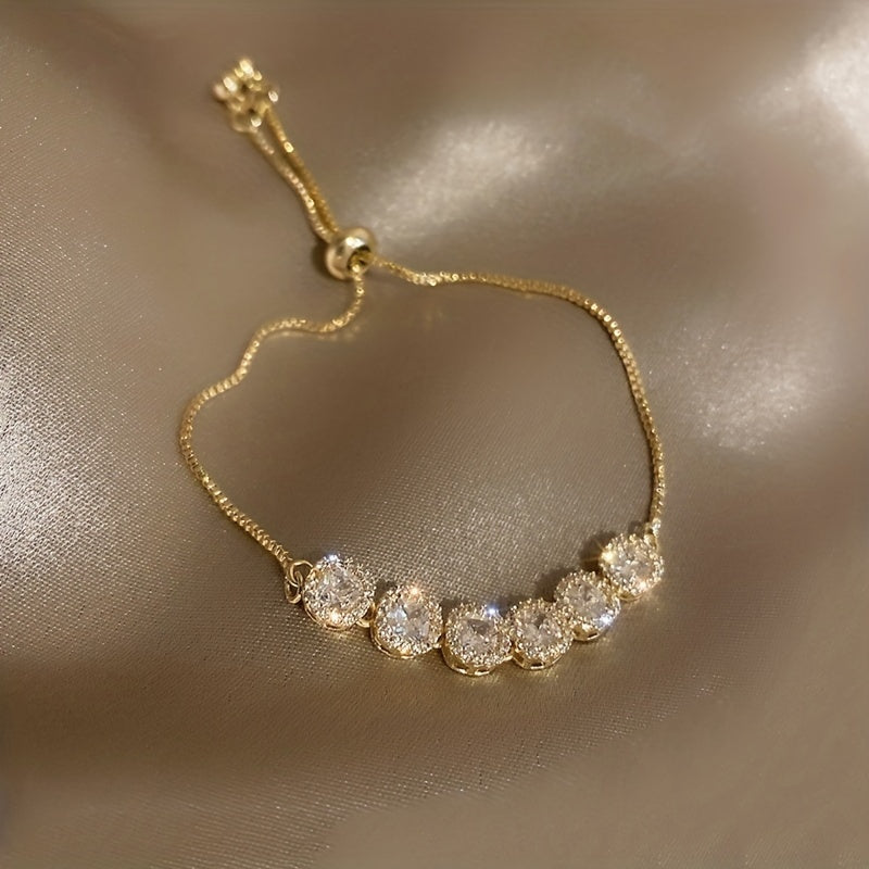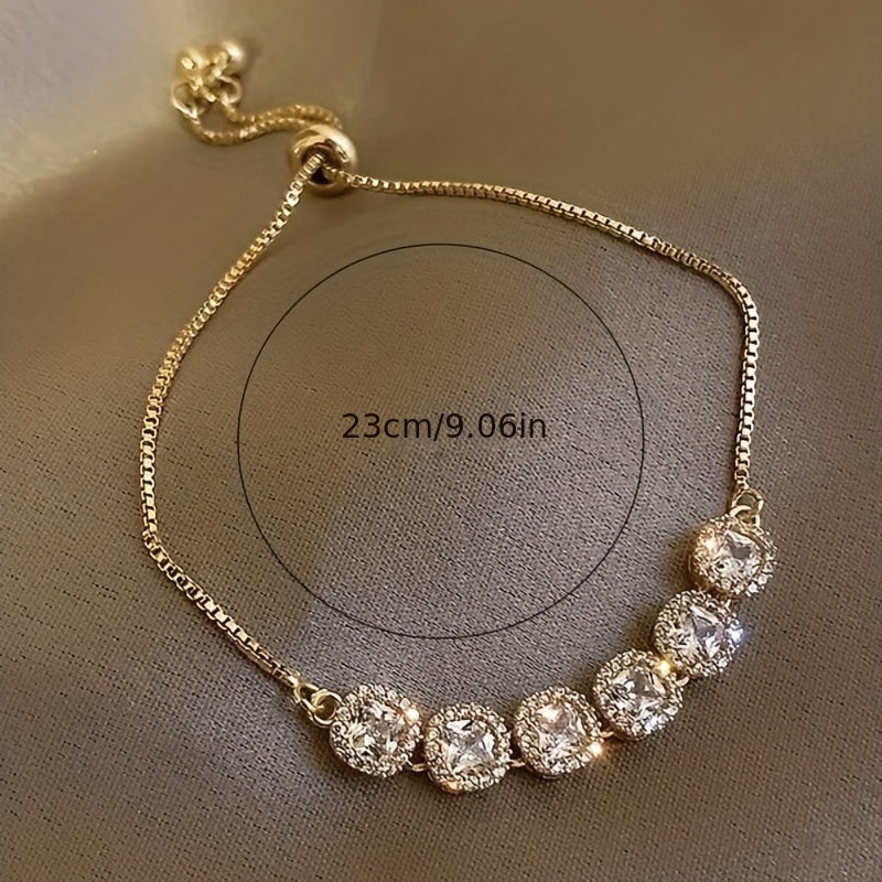 Elegant and versatile bracelet featuring inlaid zircon stones on a beaded chain. Adjustable length for a perfect fit.