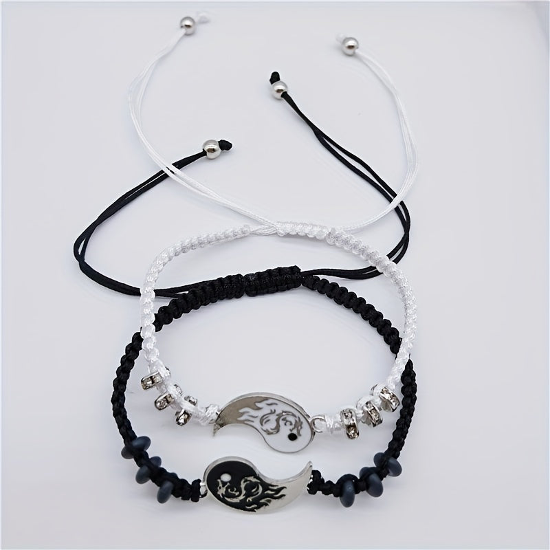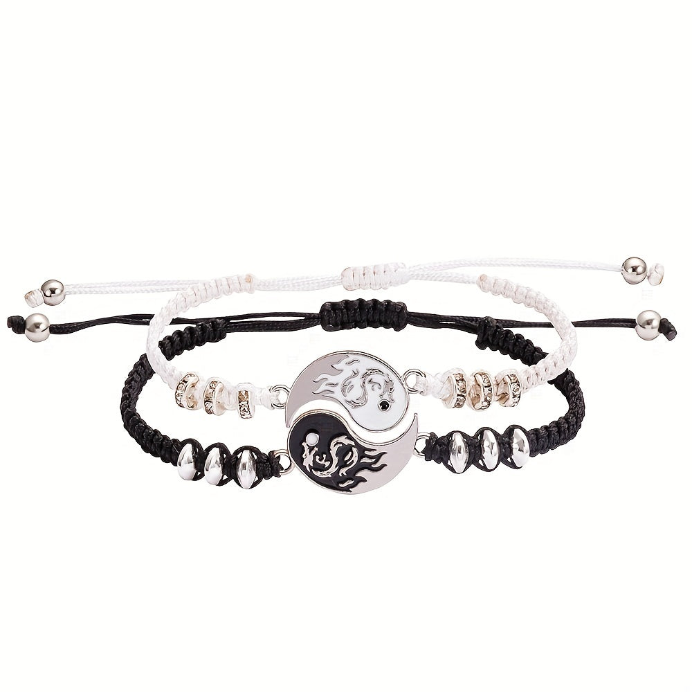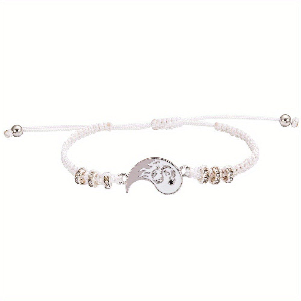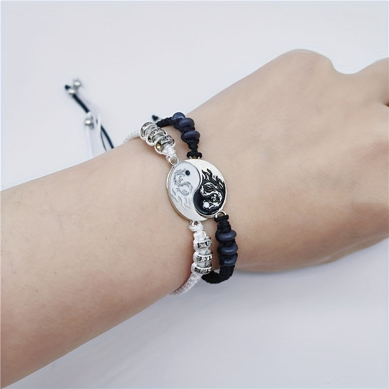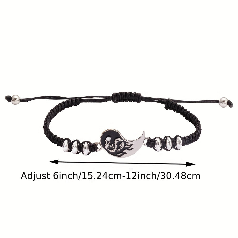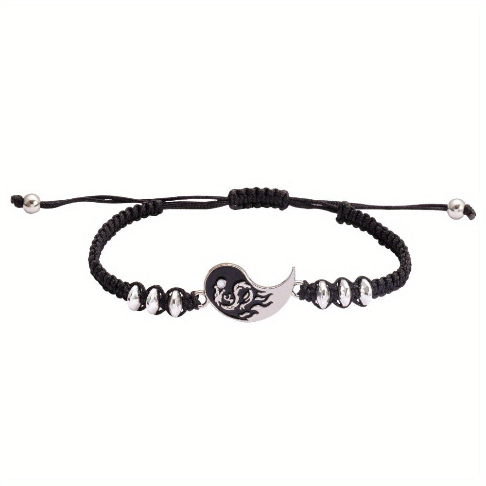 Elegant alloy bracelet featuring a dragon and Tai Chi design, perfect for couples. Ideal decorative accessory for holiday parties or as a gift for both men and women.
