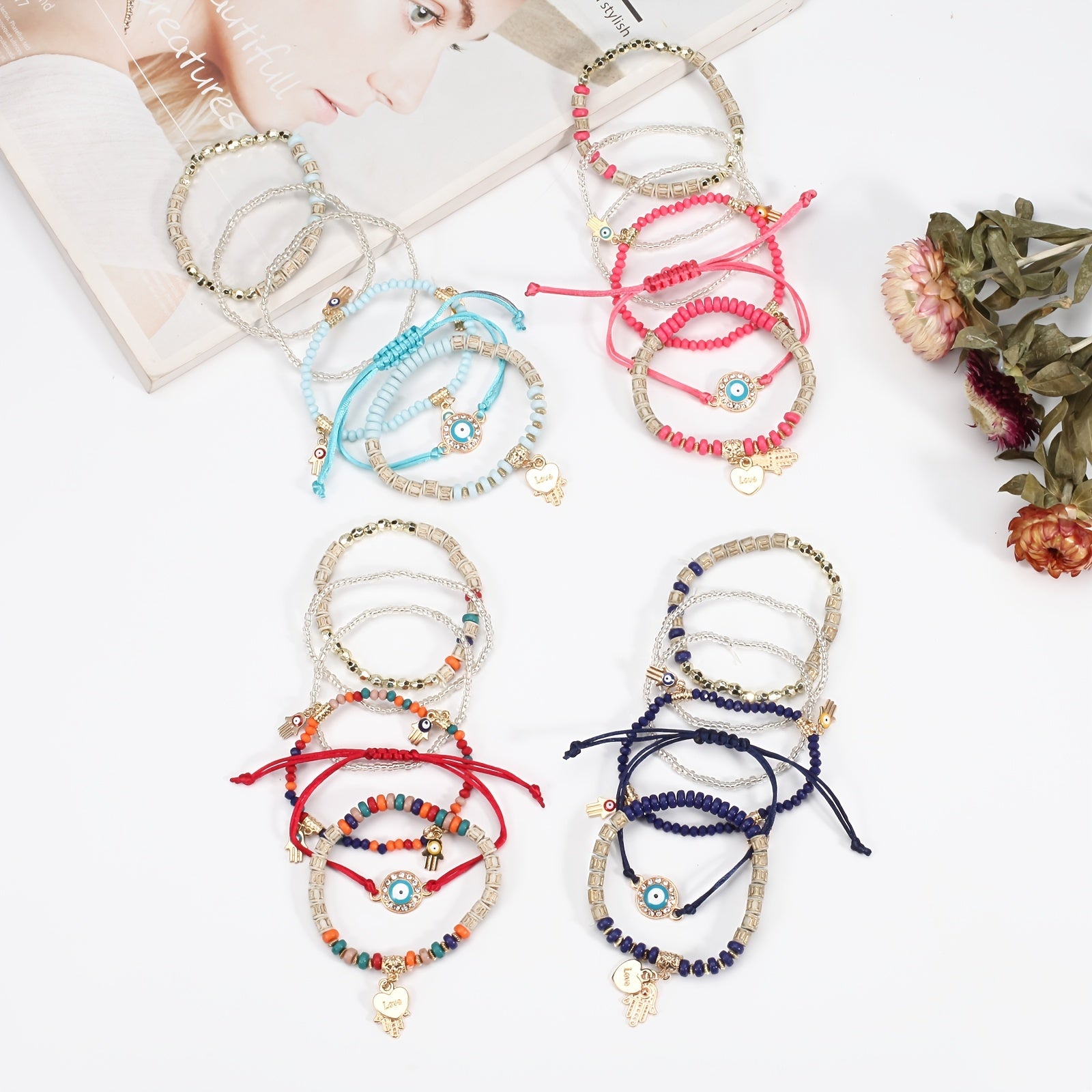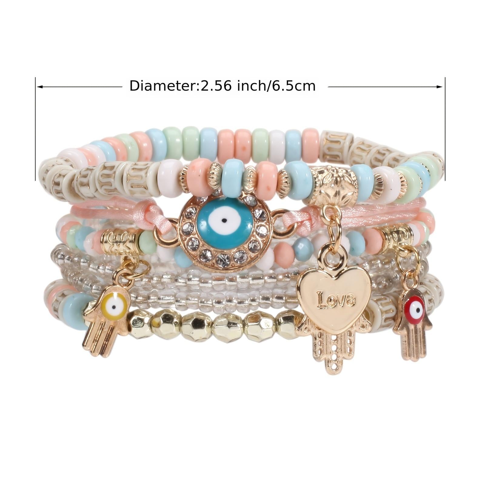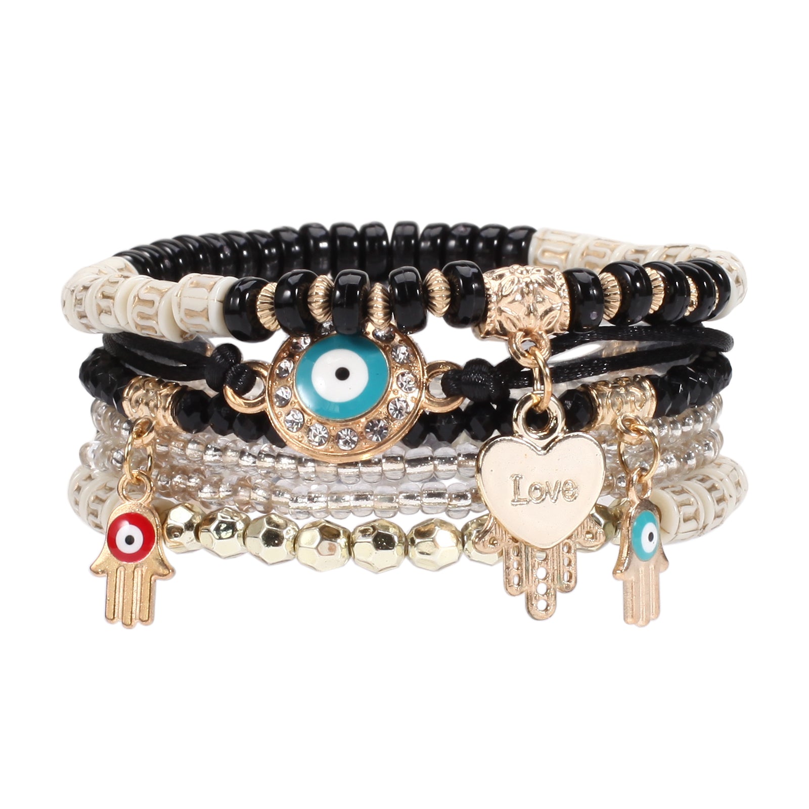 A stylish bohemian bracelet featuring a detailed eye and hand design, perfect for women with a unique sense of style.