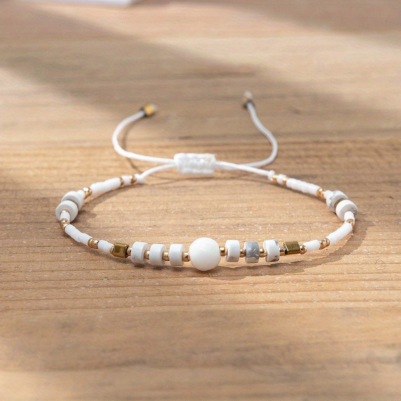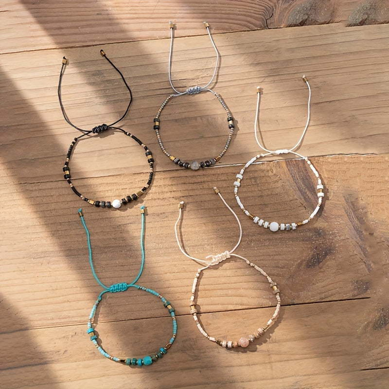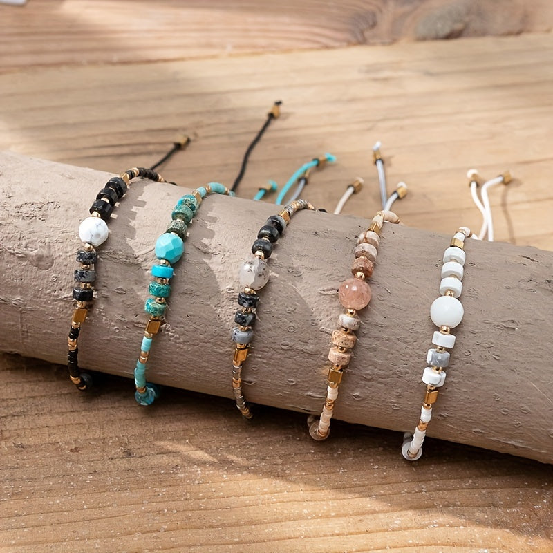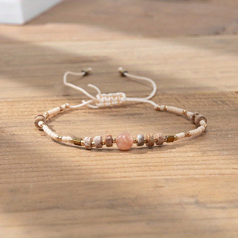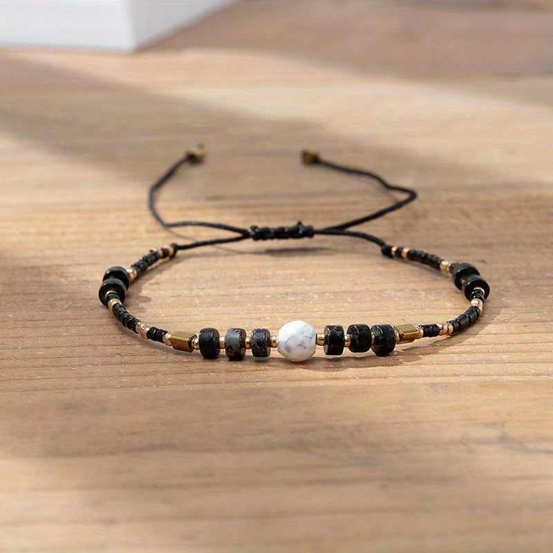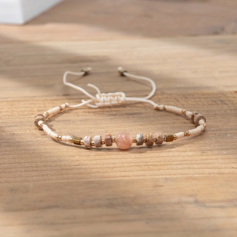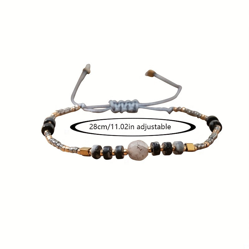 Embrace the bohemian vacation style with this lucky stone bracelet designed for both men and women. Perfect for couples to add a touch of charm to their outfits.